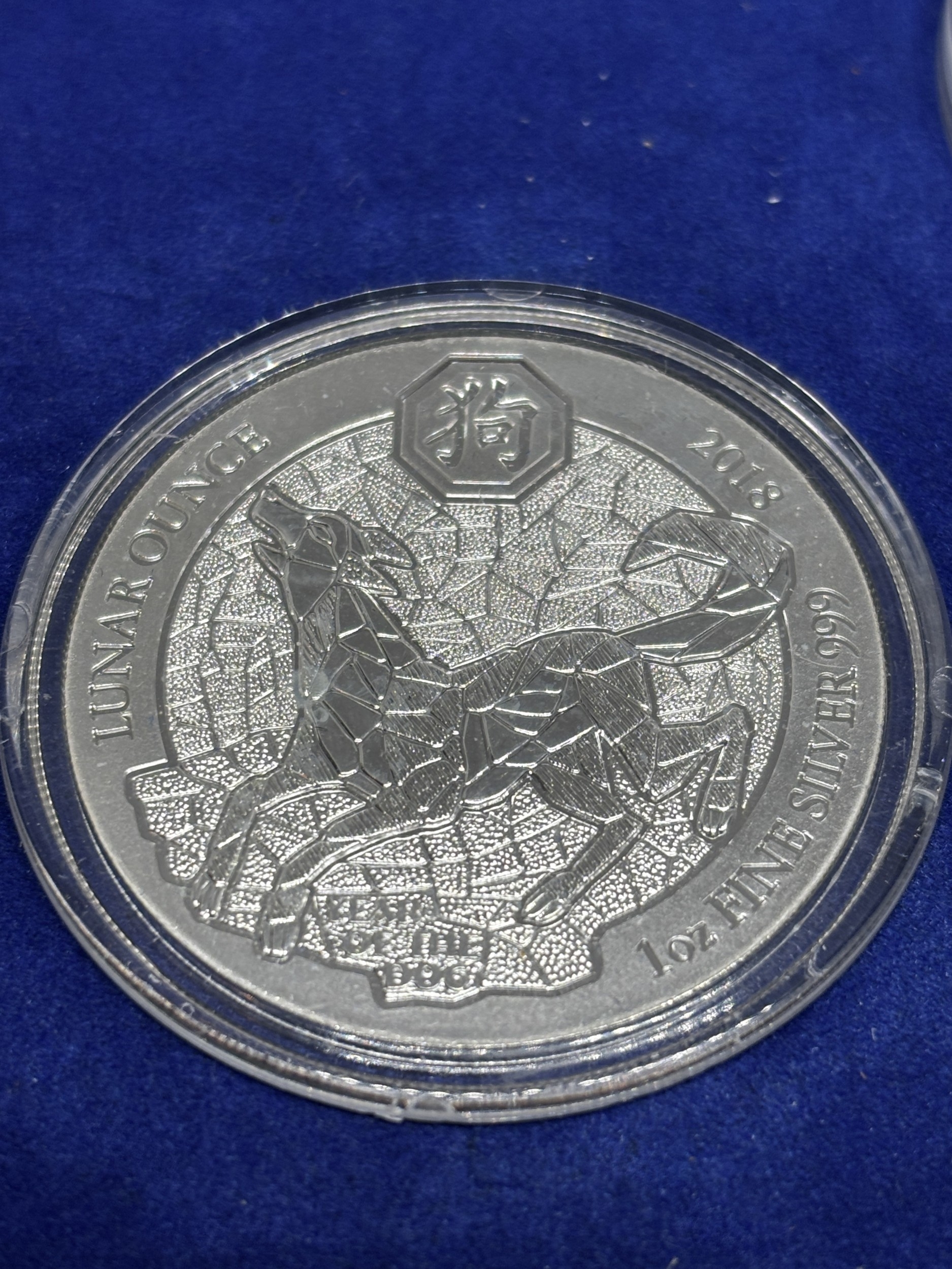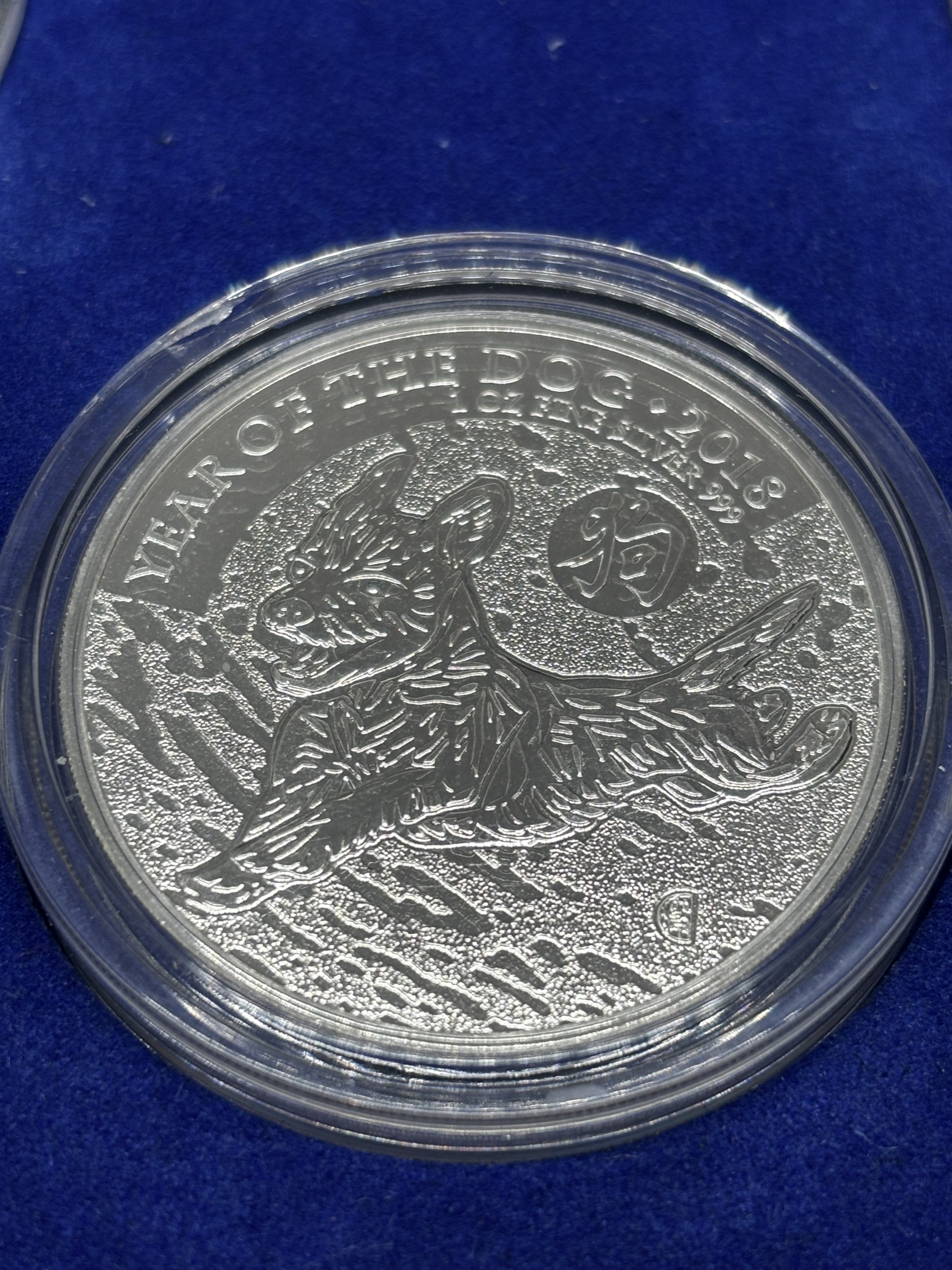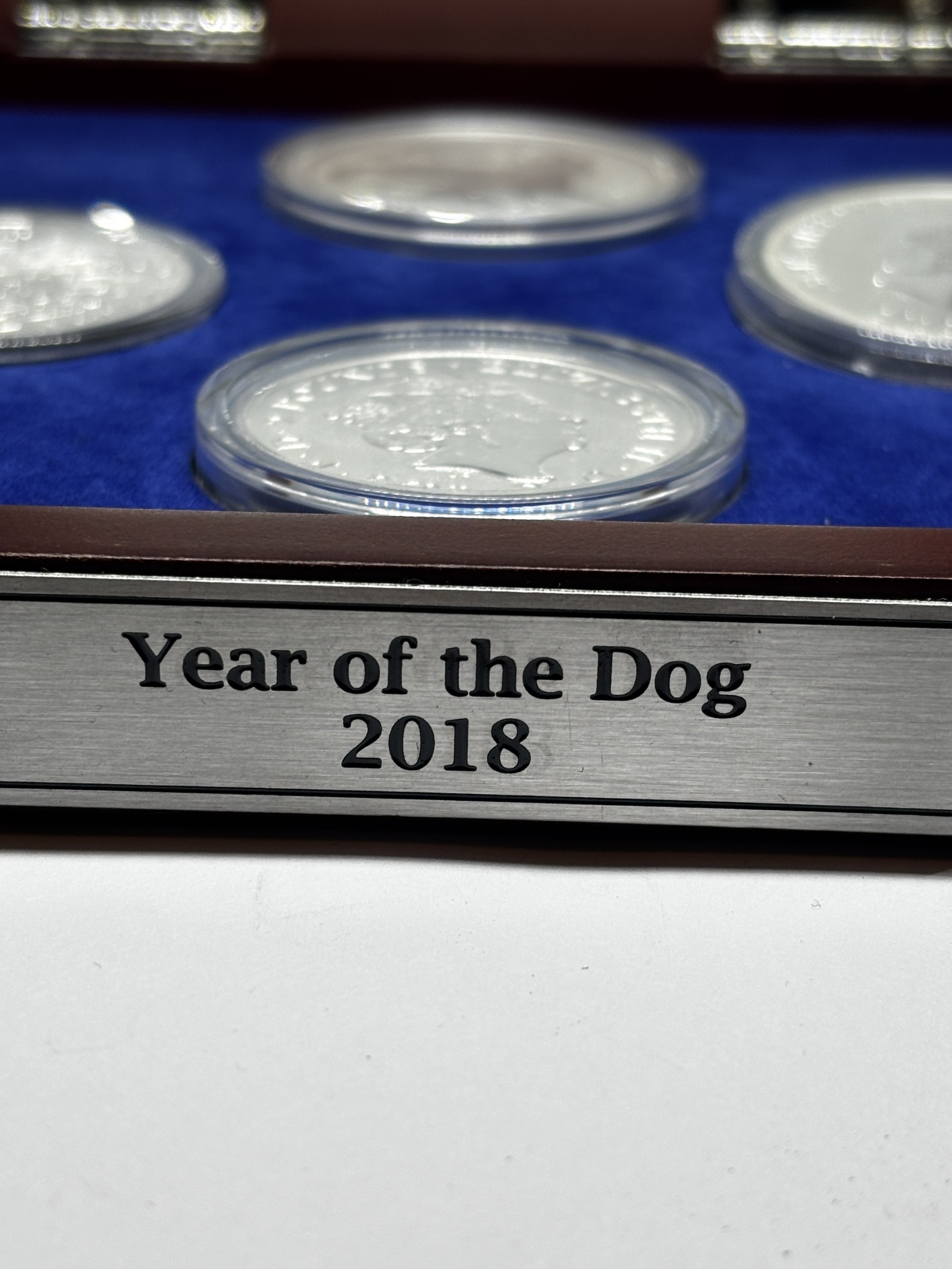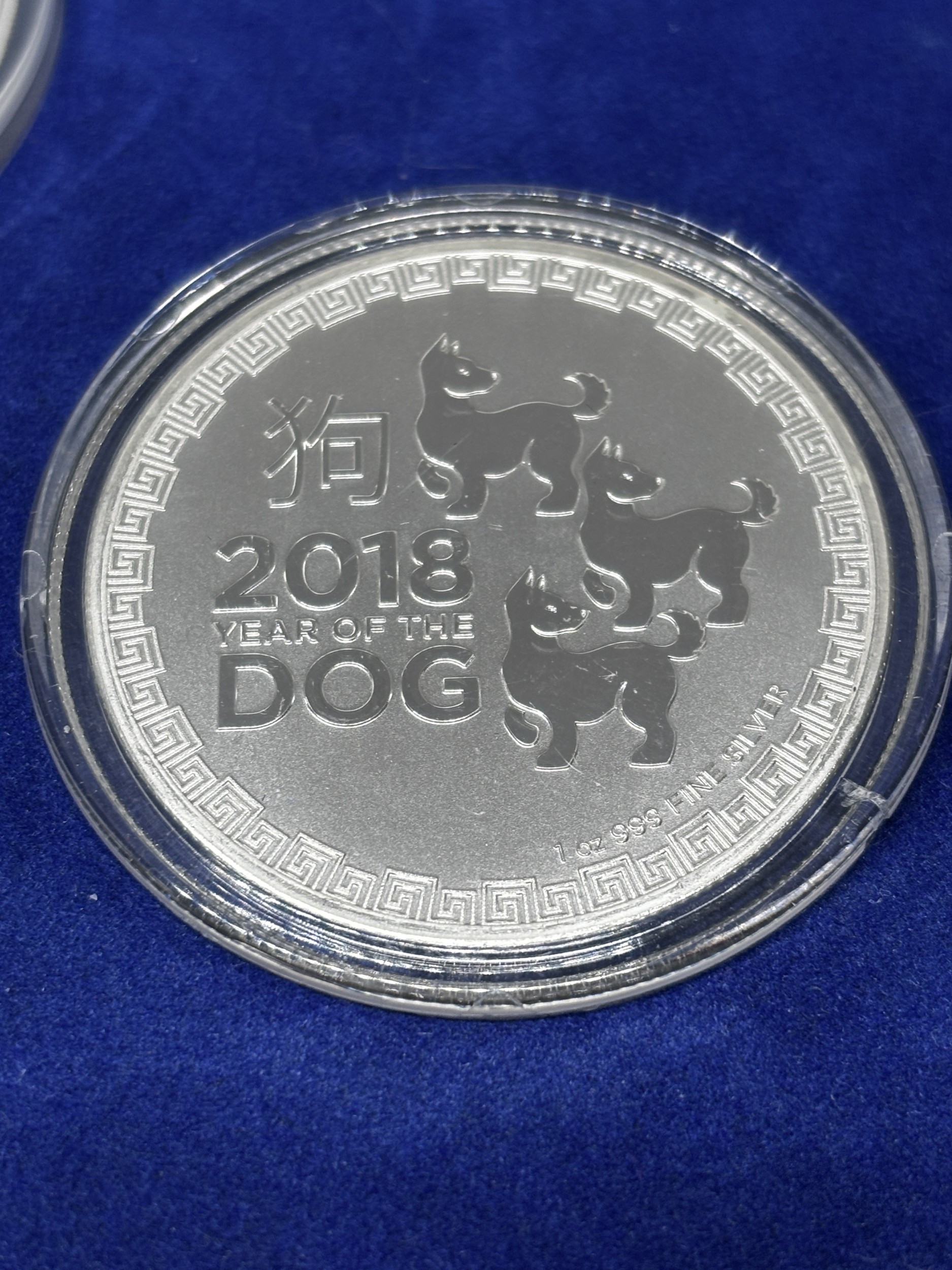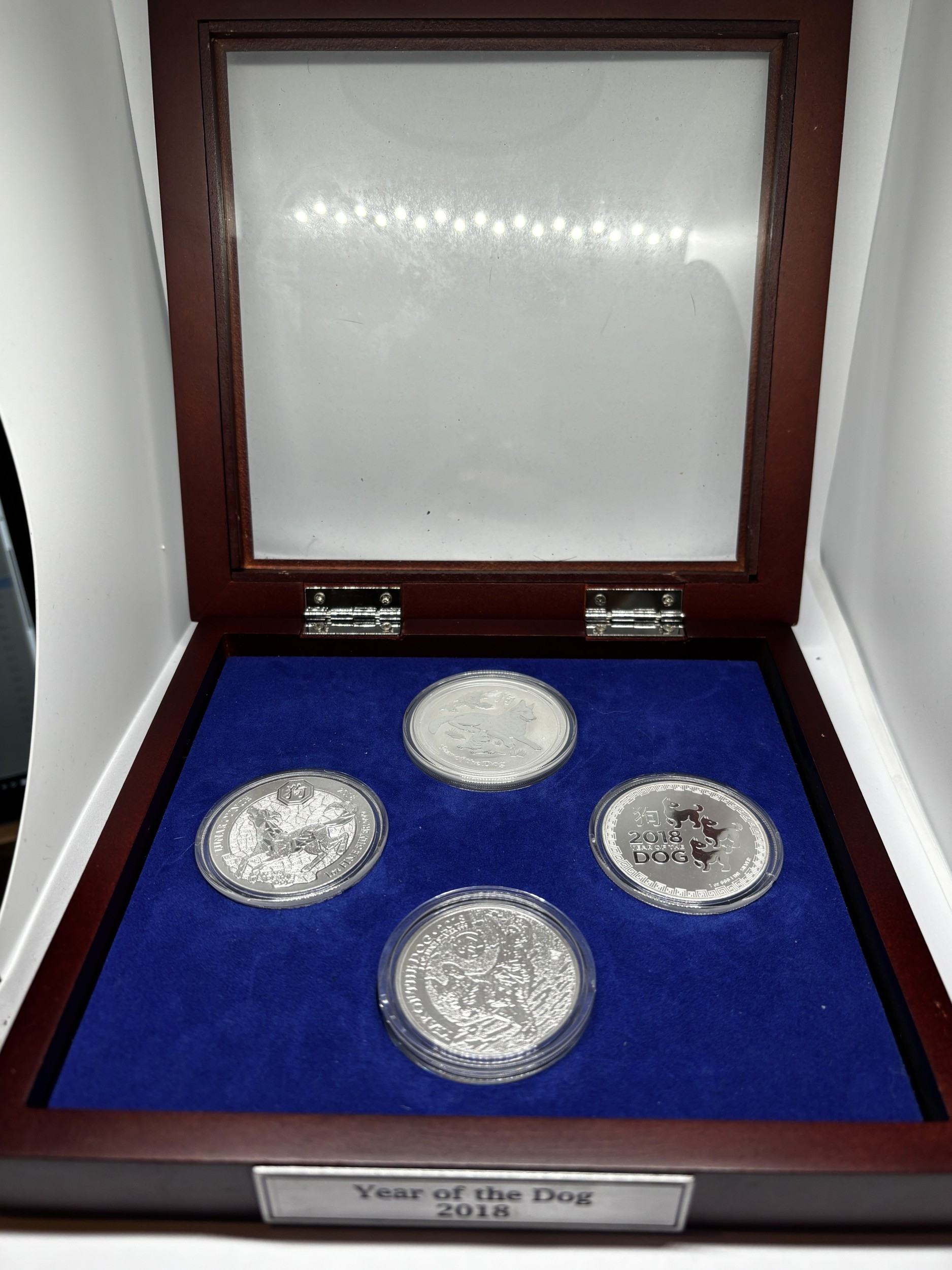 A BOXED SET OF FOUR SILVER PROOF COINS 2018 YEAR OF THE DOG