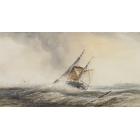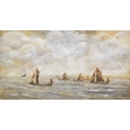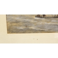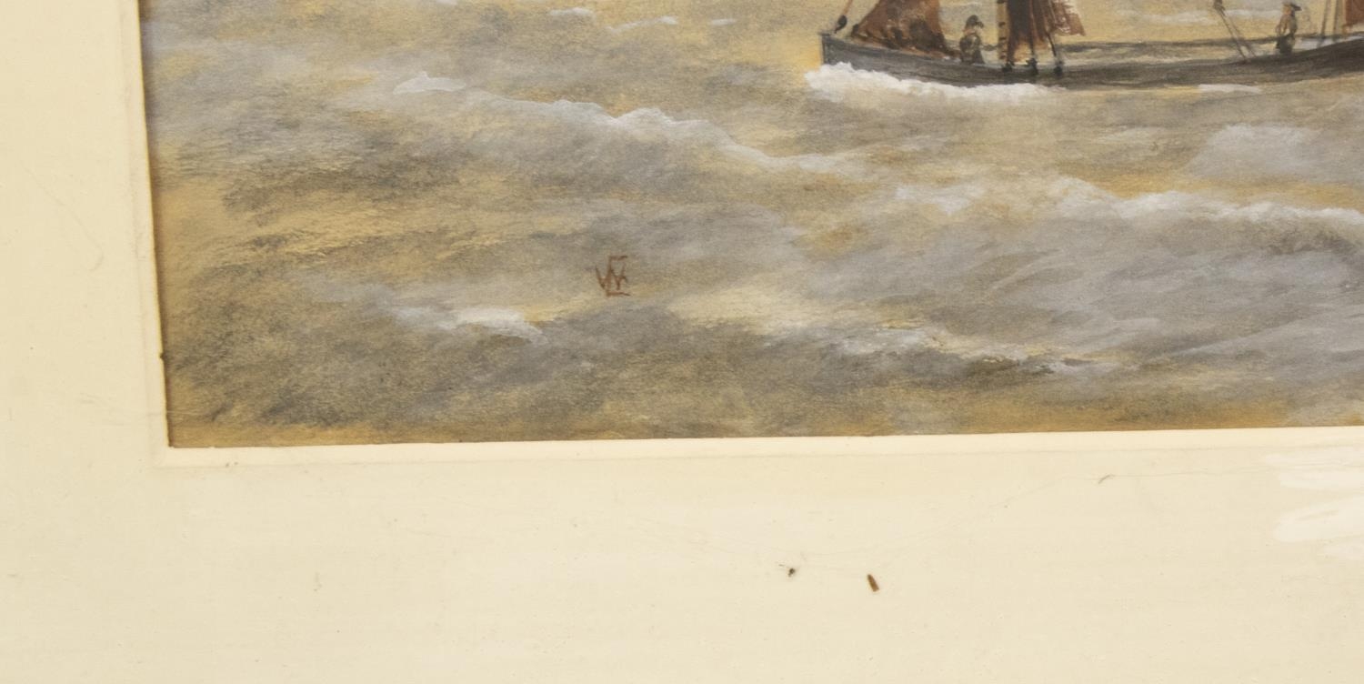 English School (Early C20th); 'Bardge Race Thames' watercolour heightened with white, signed with monogram WE, titled in pencil verso, 25cm x 46cm (A/F - frame damaged)