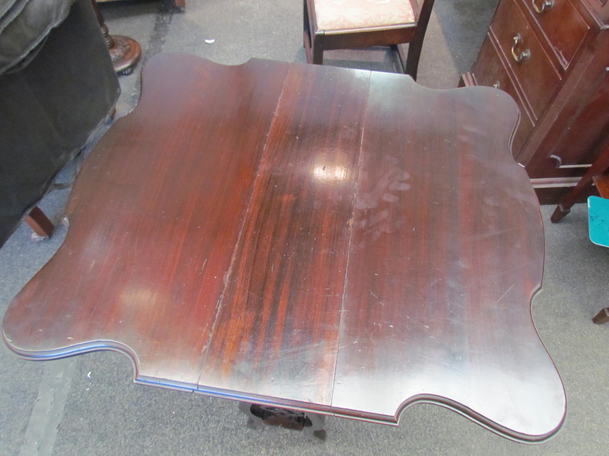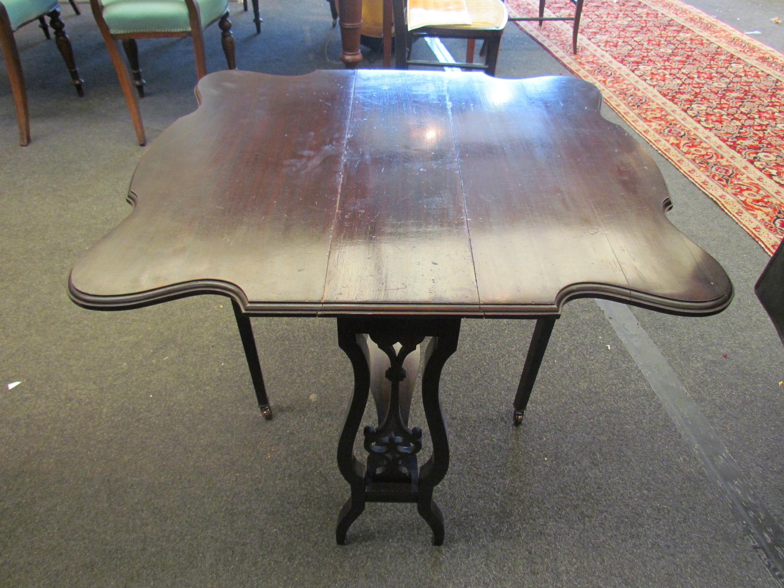 A small mahogany occasional drop-leaf table with fretwork decoration