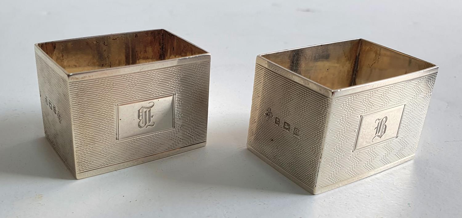 Pair of Birmingham 1927 rectangular engine turned napkin rings (2),52 grams