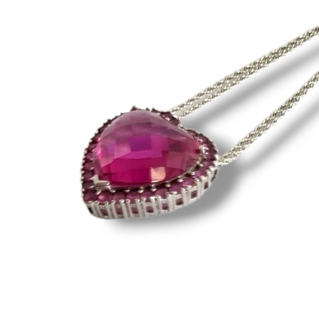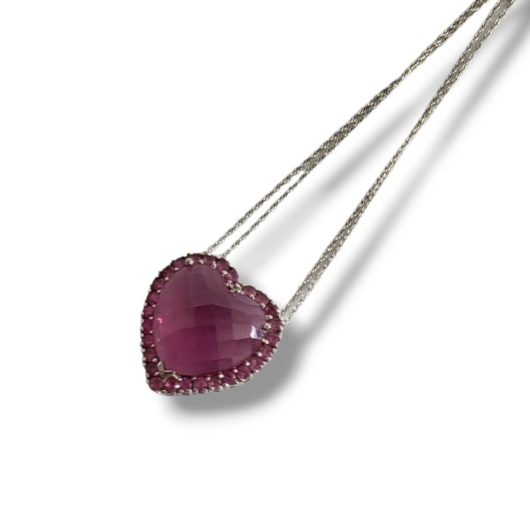 AN AMERICAN 10CT WHITE GOLD SEMIPRECIOUS HEART FORM PENDANT