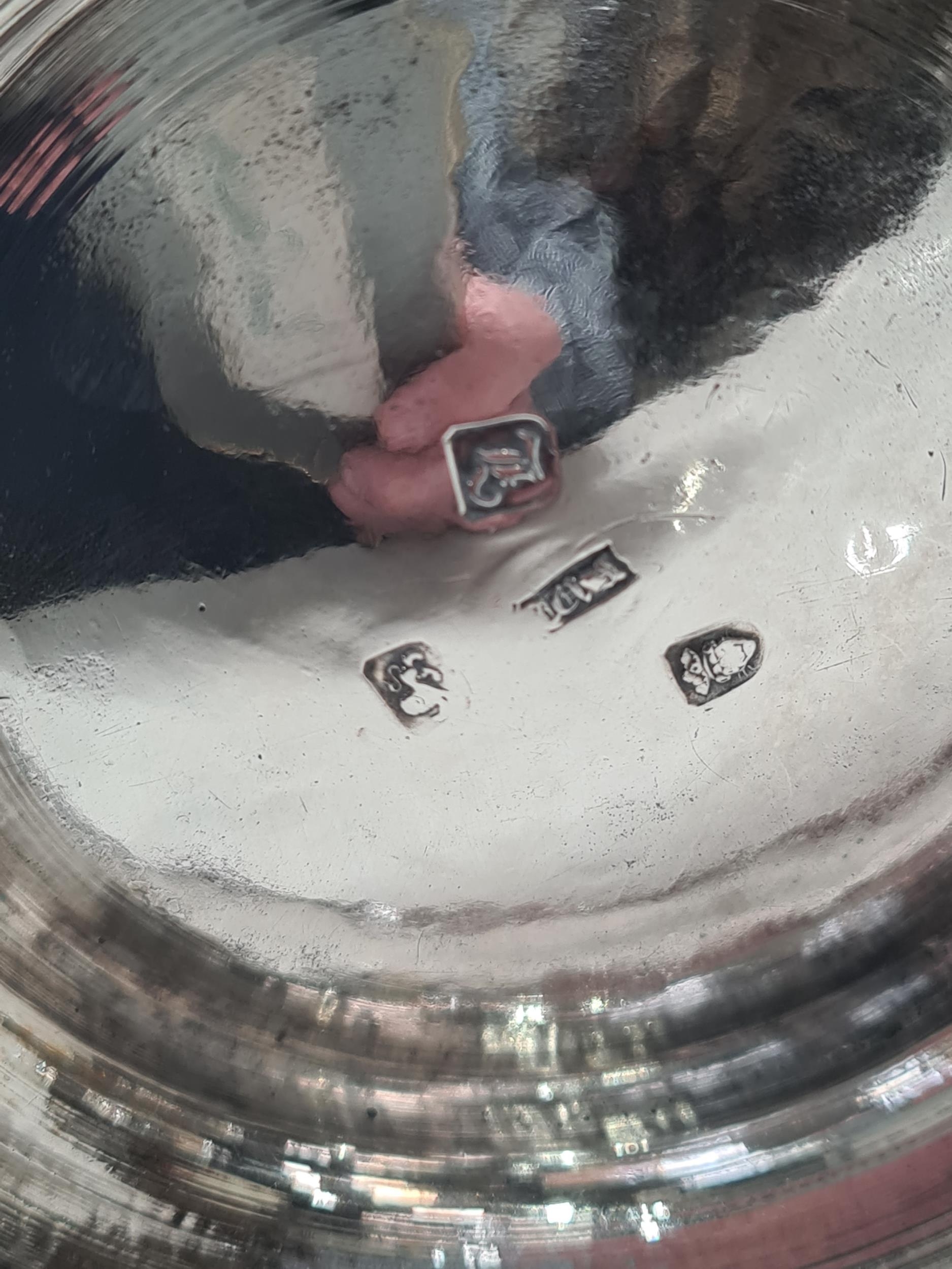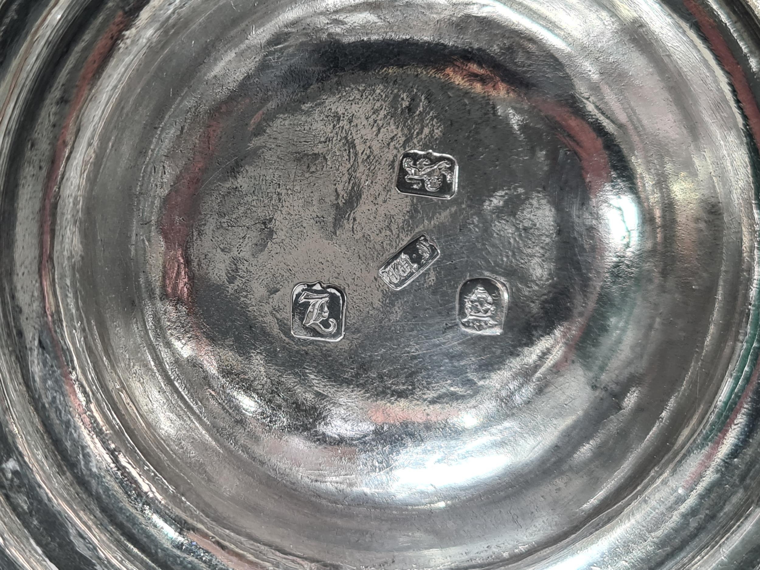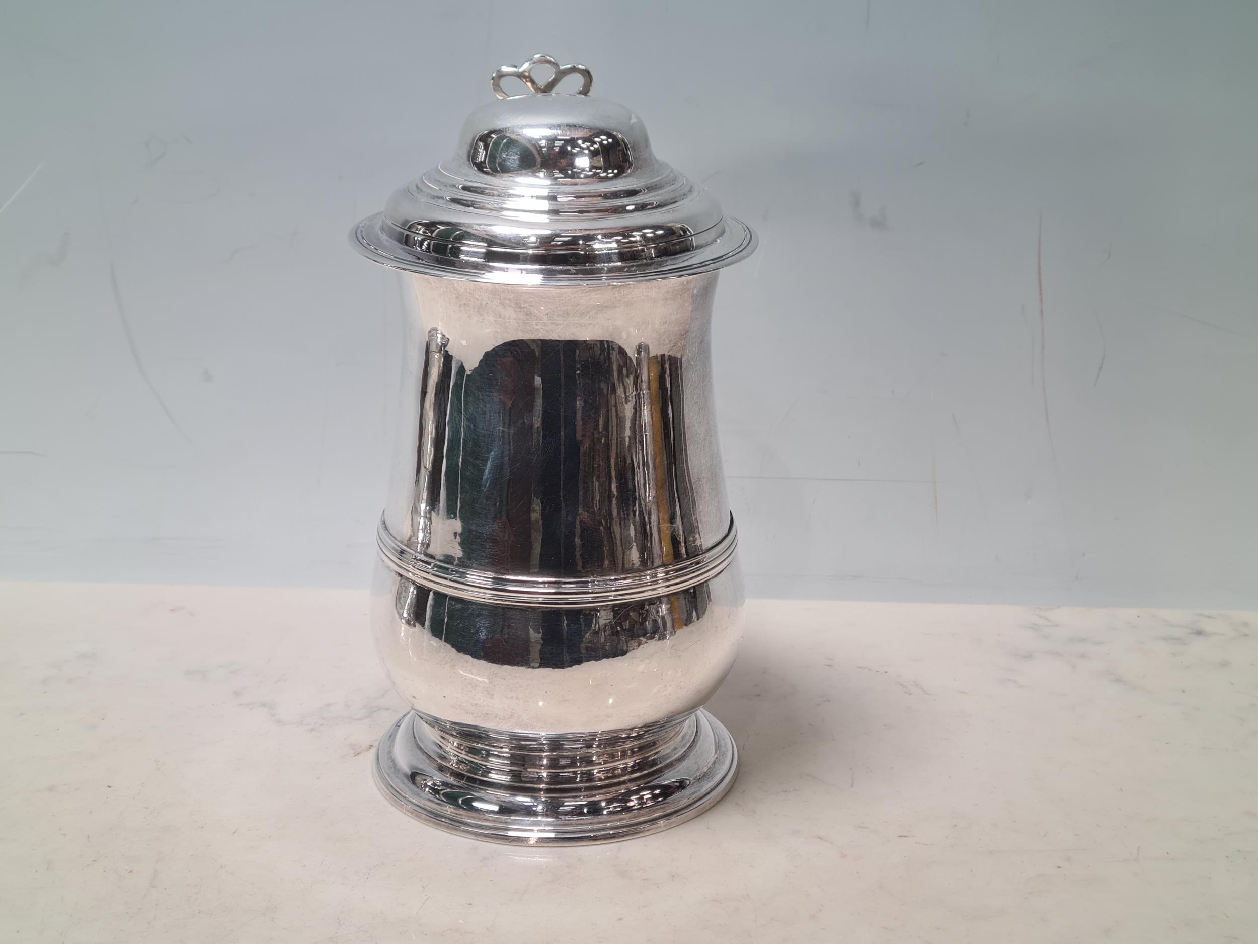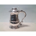 A George III silver lidded baluster Tankard with pierced thumb piece, domed lid scroll handle engraved initials W over T * T, London 1766, maker: gothic W.F, 8 1/4in, 868gms