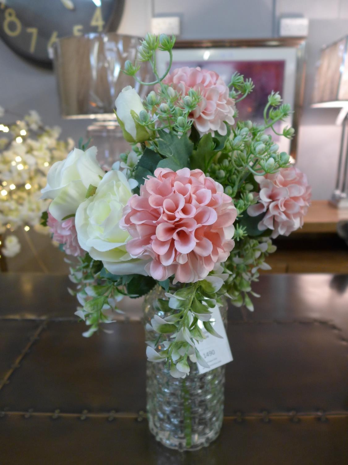 A crysanthemum and rose mix arrangement in a lattice vase (50622613) #