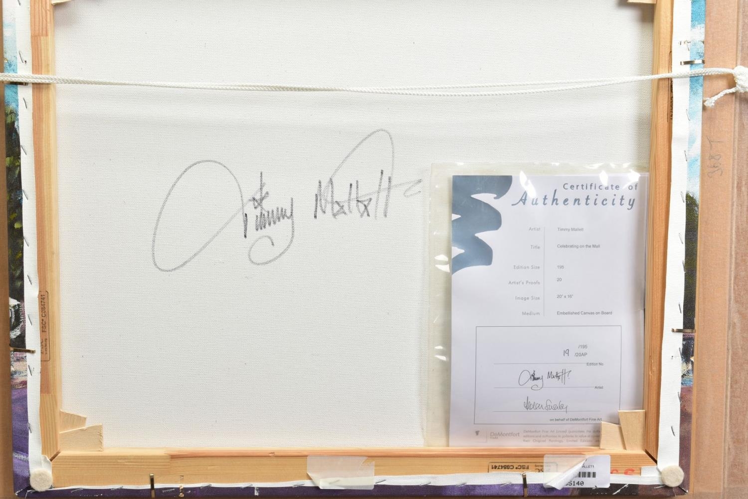 TIMMY MALLETT (BRITISH CONTEMPORARY) 'CELEBRATING ON THE MALL' an artist proof print 19/20, signed verso, with certificate, framed, approximate size 43cm x 50cm (condition:- good condition) (A)