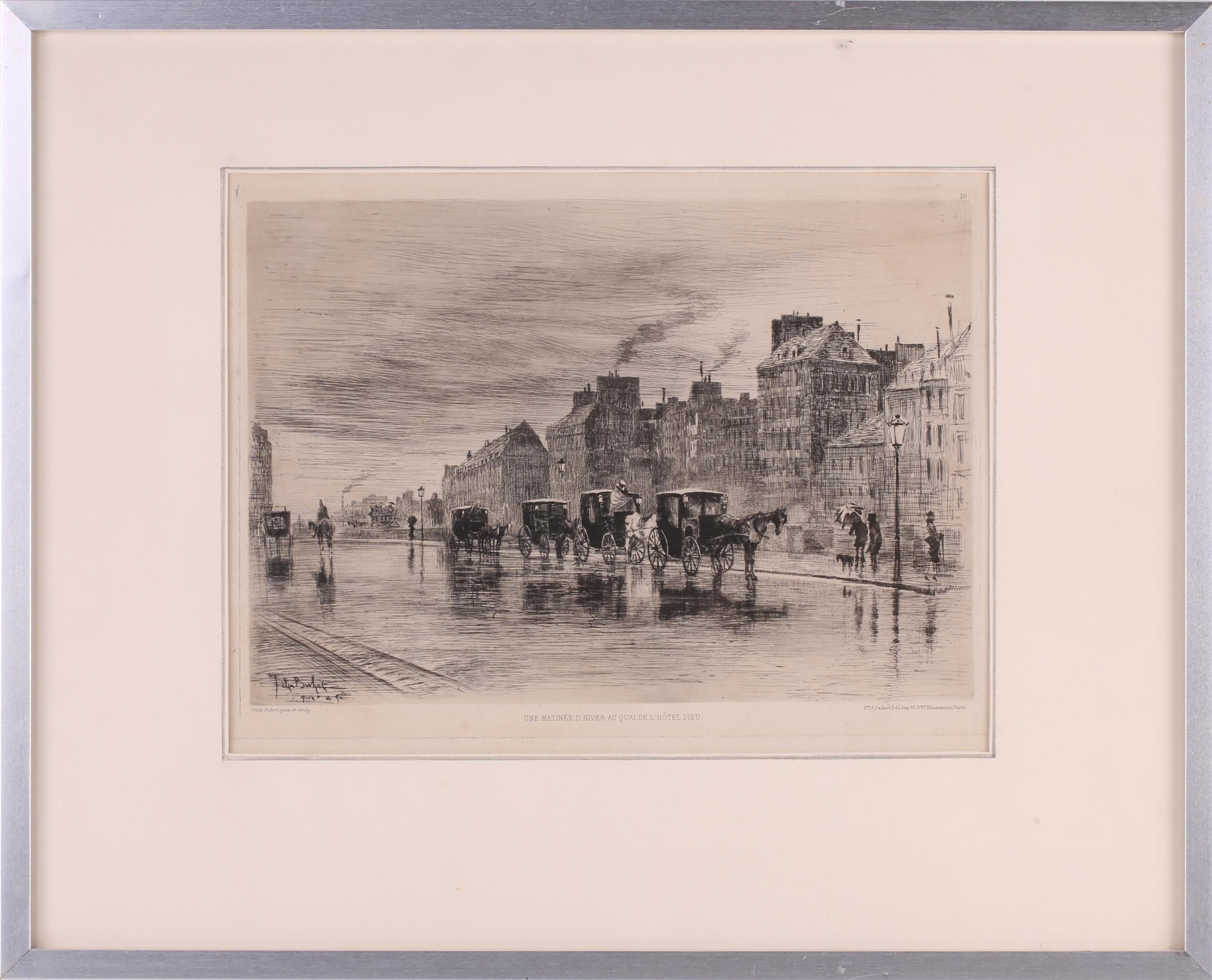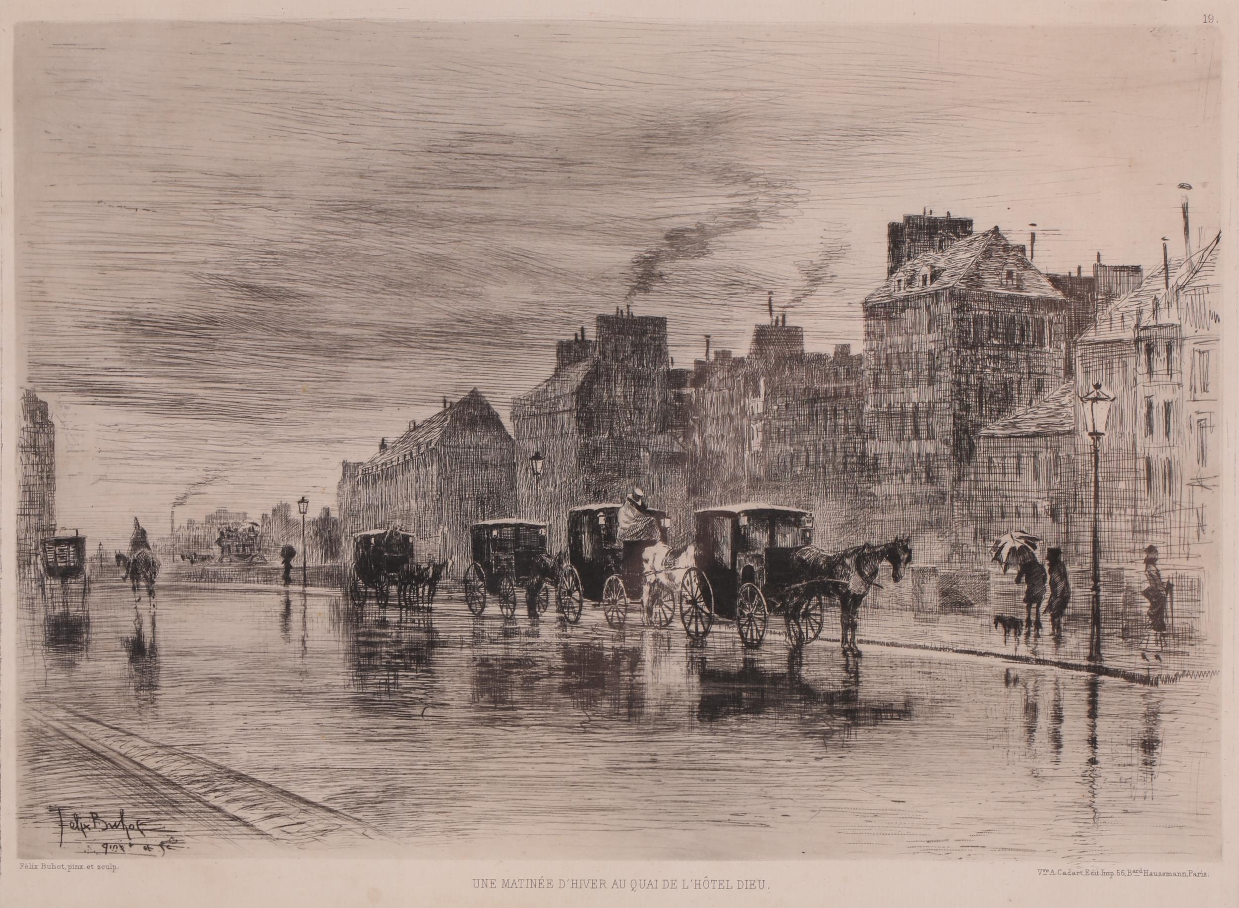 Felix Buhot (1847 – 1898), Une Matinee D’Hiver Au Quai de L’Hotel Dieu, signed within the plate, Bourcard 123, plate 34cm x 32cm