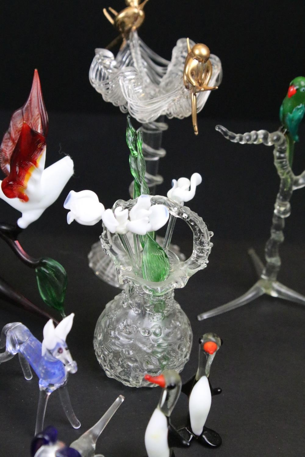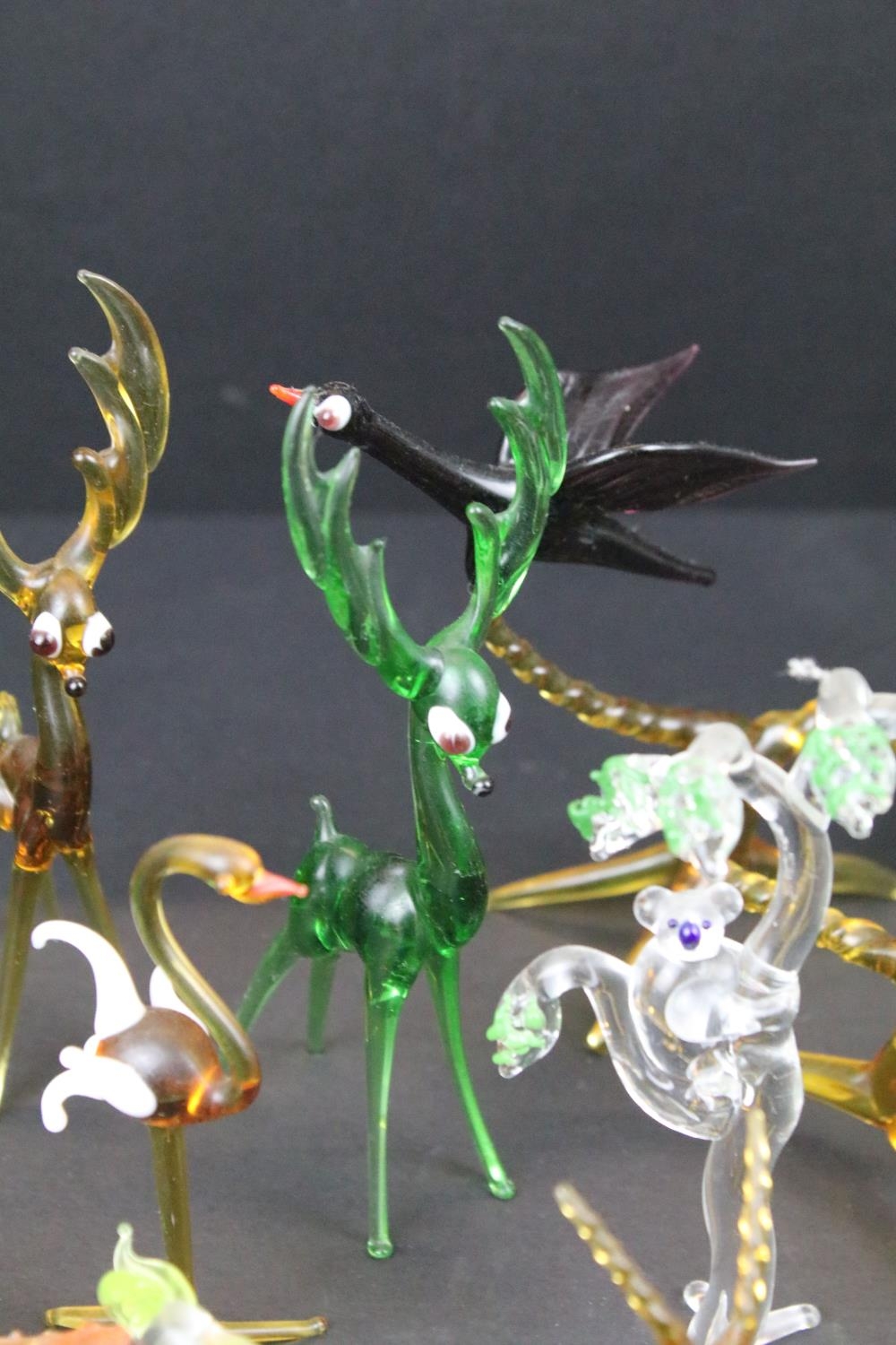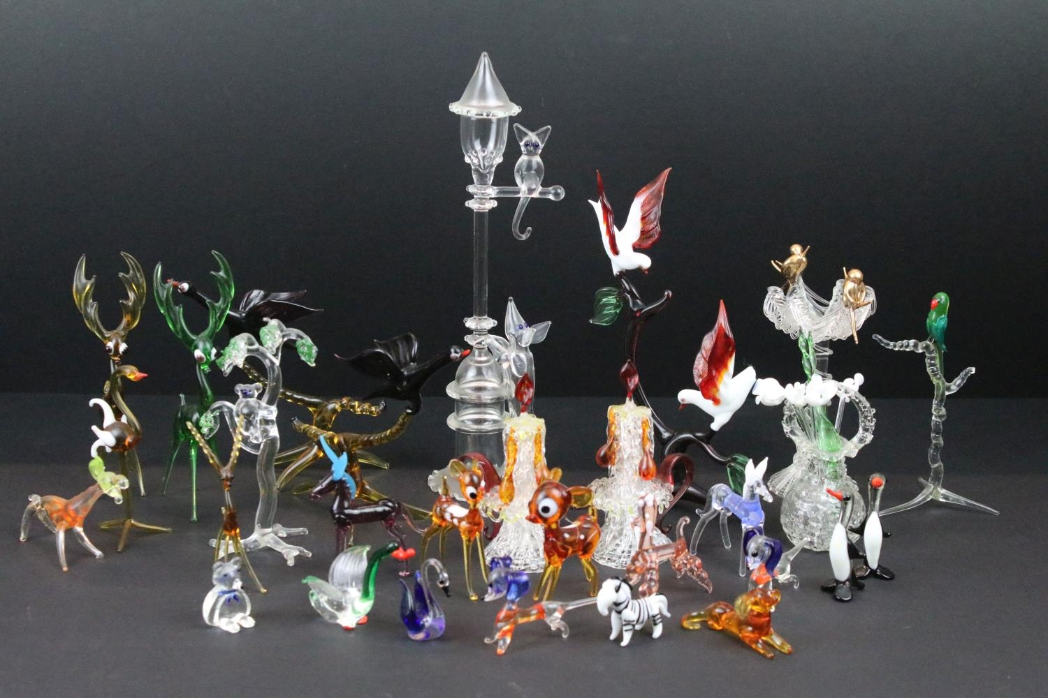 Over 30 Murano glass figures to include Doves, Swans, Dogs, Deer and many more