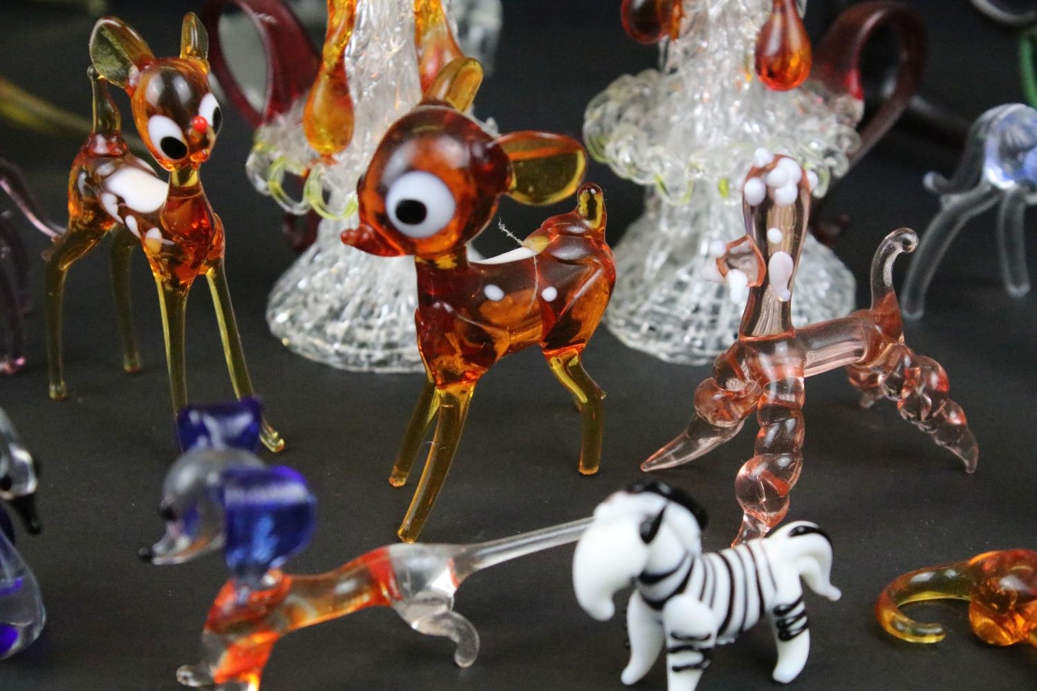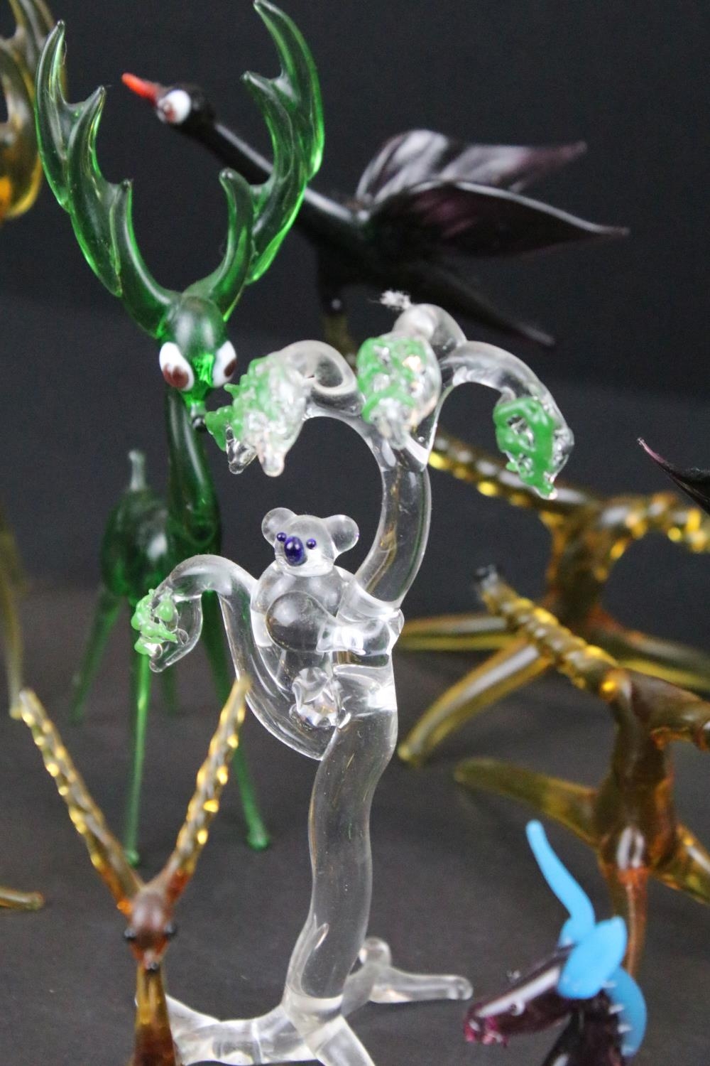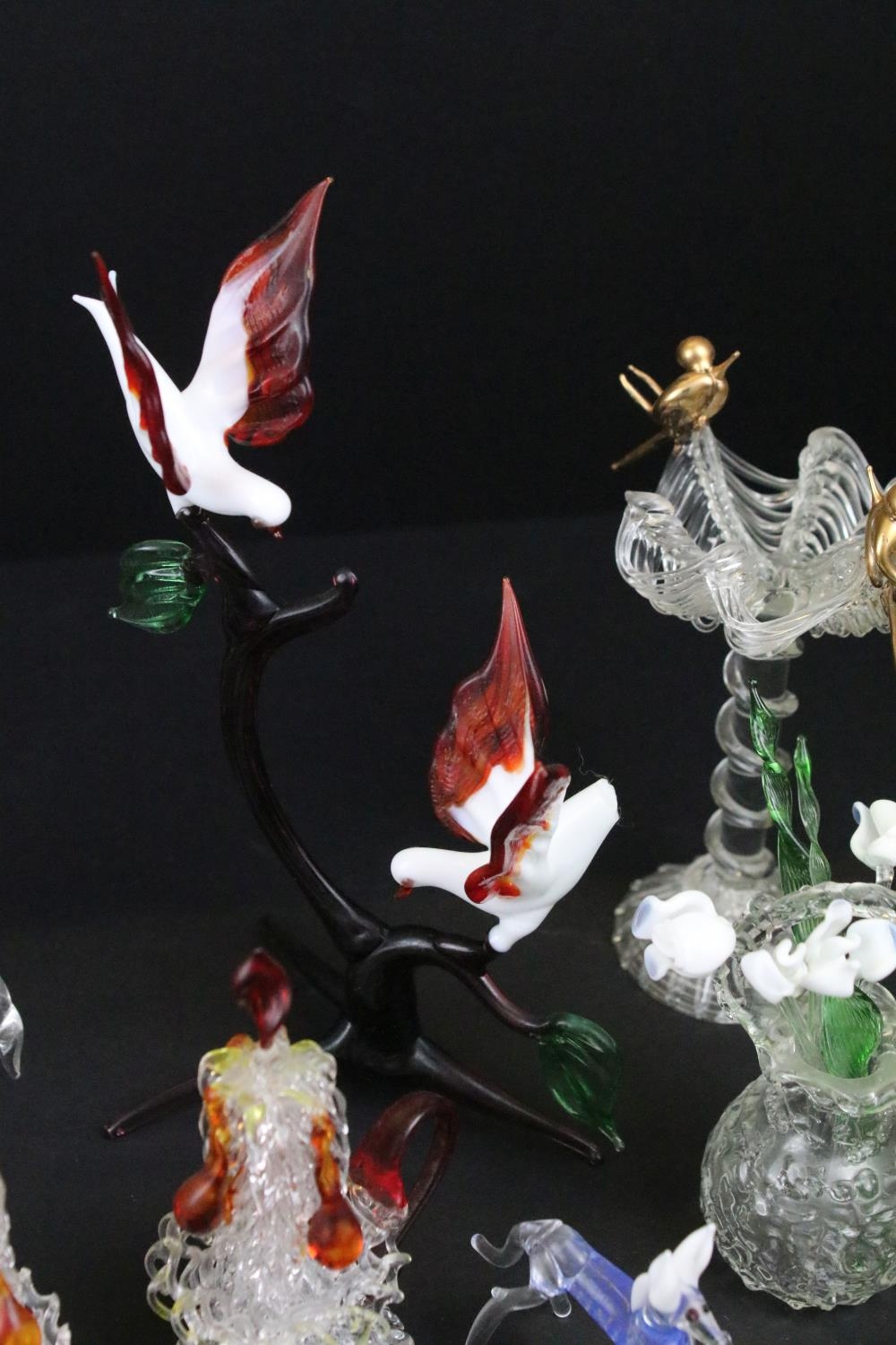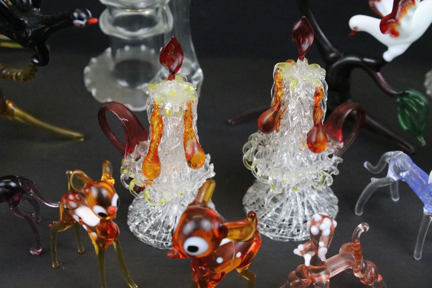 Over 30 Murano glass figures to include Doves, Swans, Dogs, Deer and many more