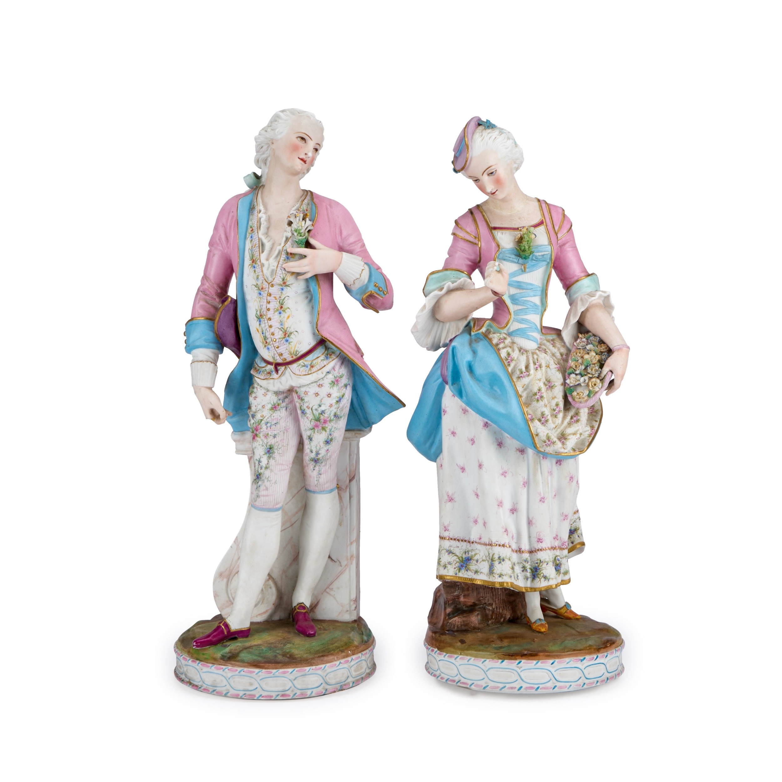 A LARGE PAIR OF CONTINENTAL BISQUE PORCELAIN FIGURES LATE 19TH CENTURY