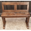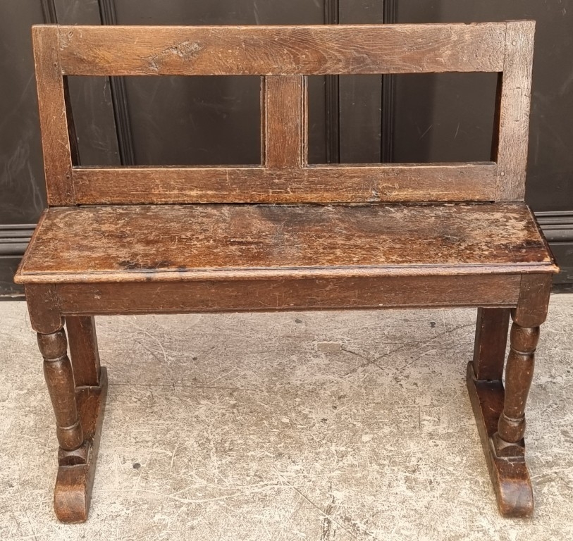 An 18th century and later oak hall bench, 91.5cm wide.