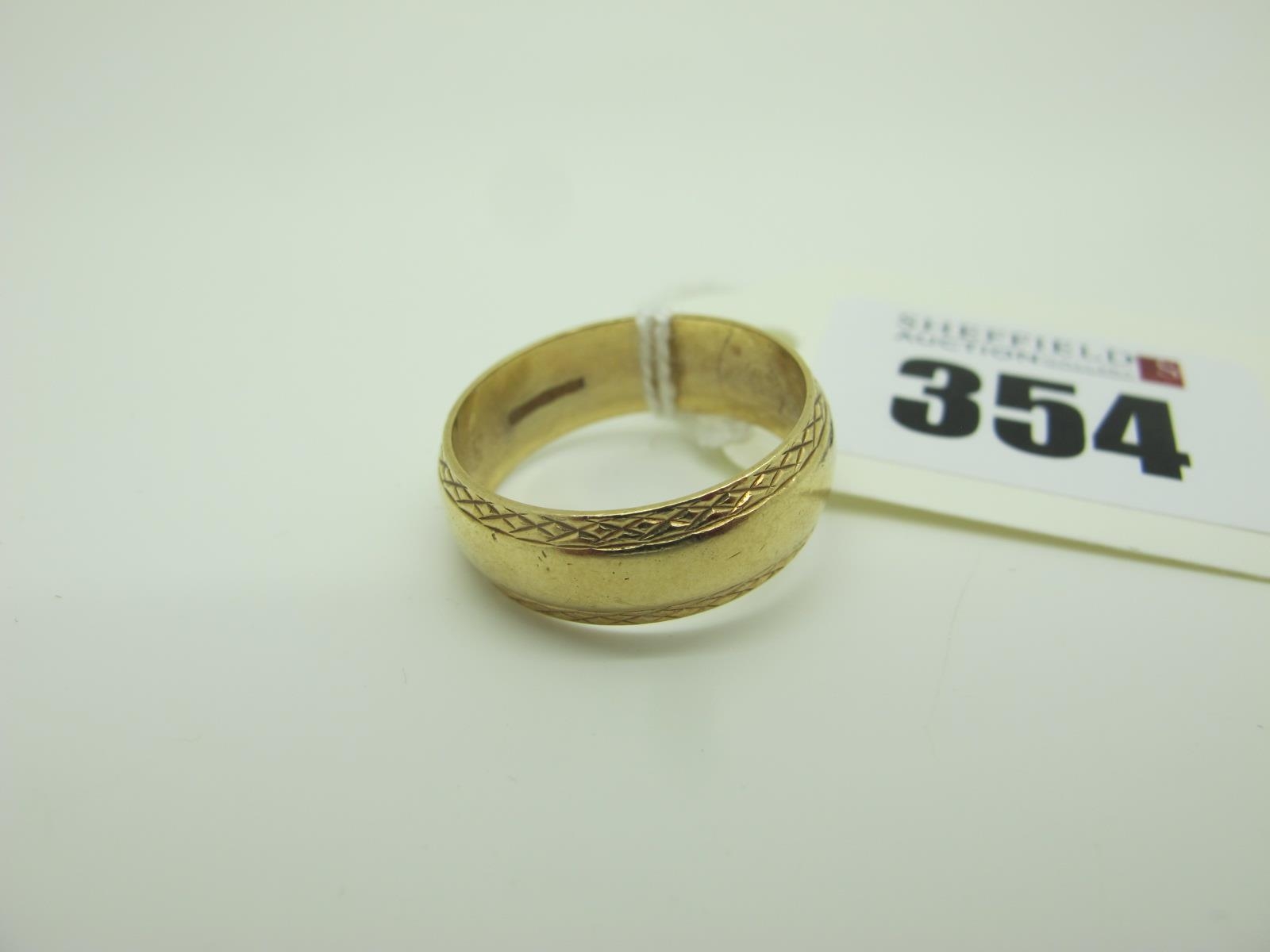 A 9ct Gold Wedding Band, with textured edge (finger size R) (4.5grams).