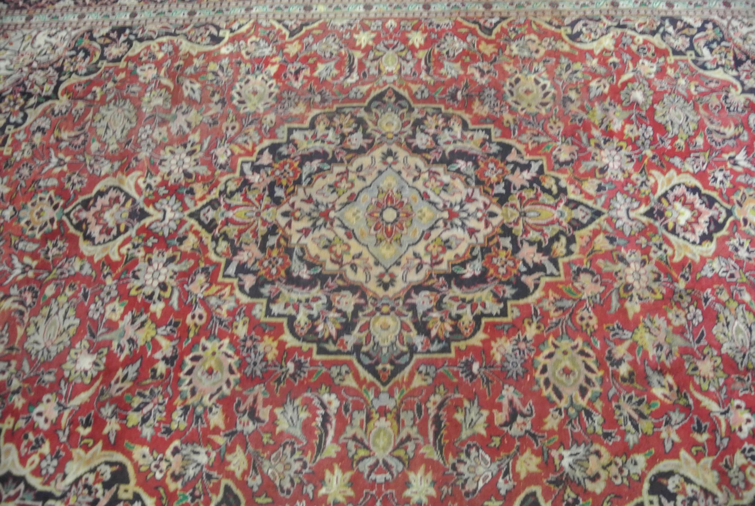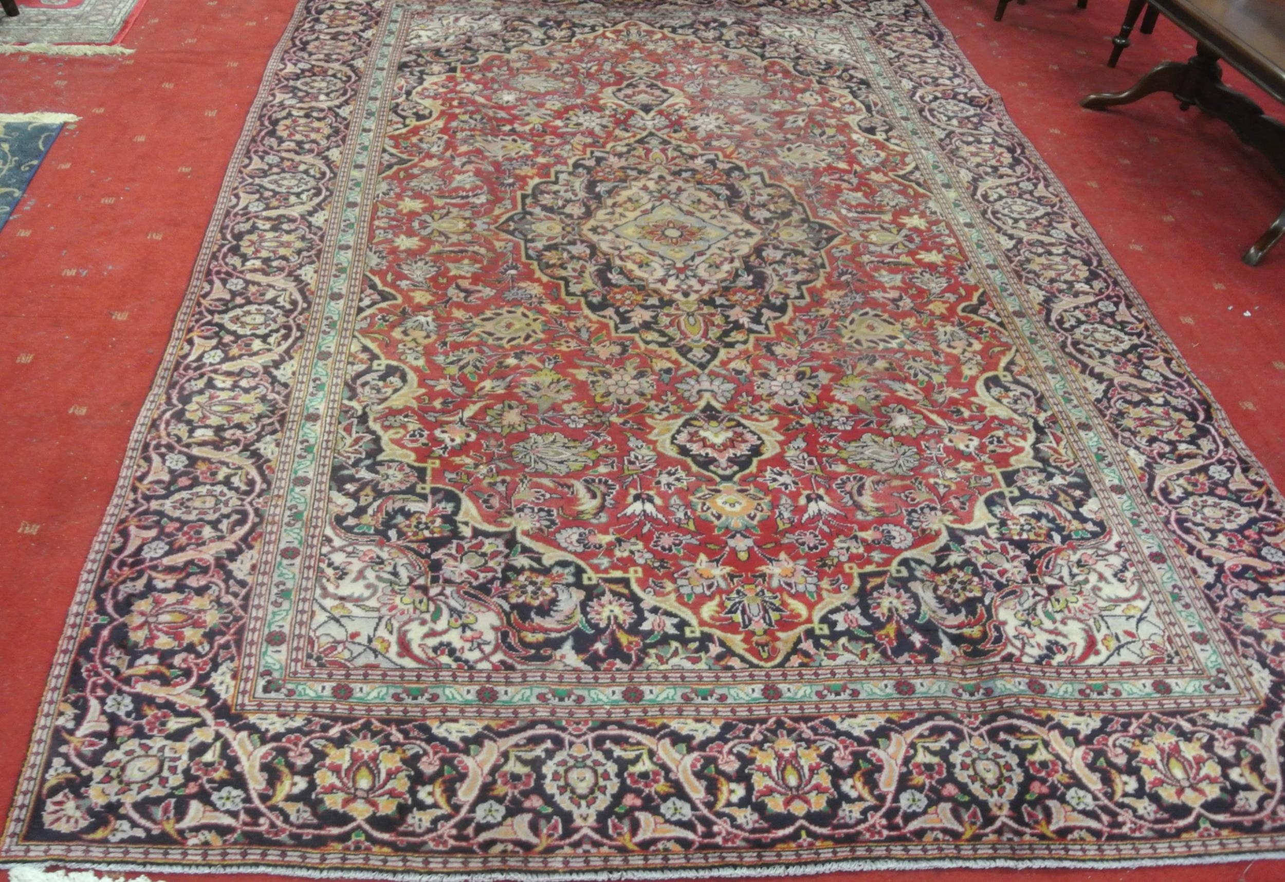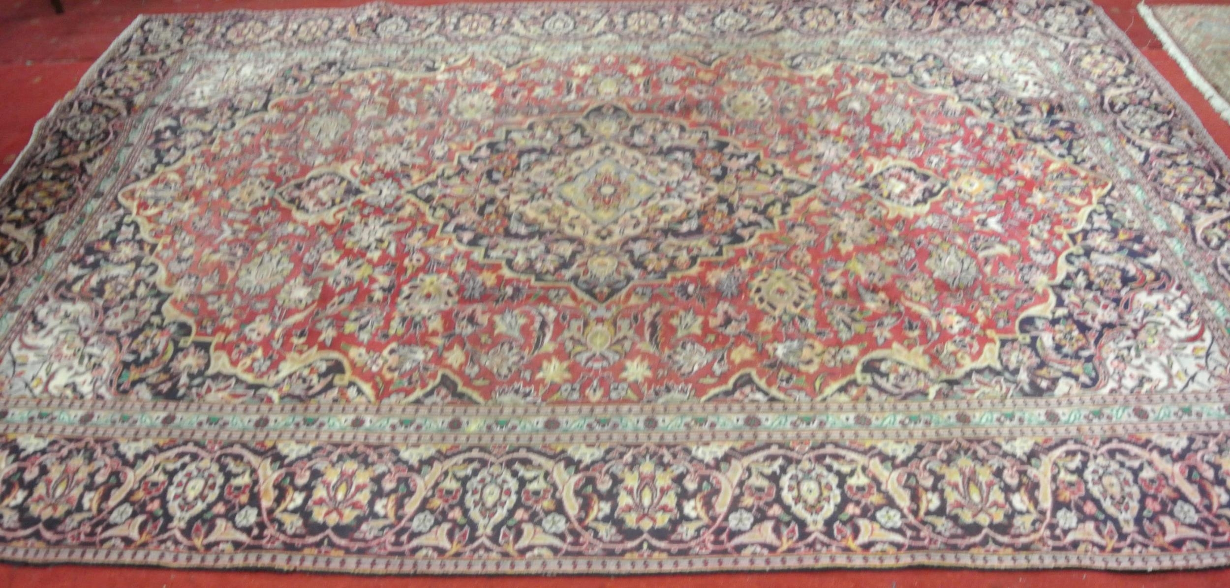 Red ground Persian Kashan carpet with floral medallion design 333x225