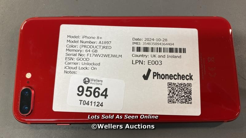 APPLE IPHONE 8+/ A1897/ 64GB/ I-CLOUD LOCKED/ IMEI 354835094364404
