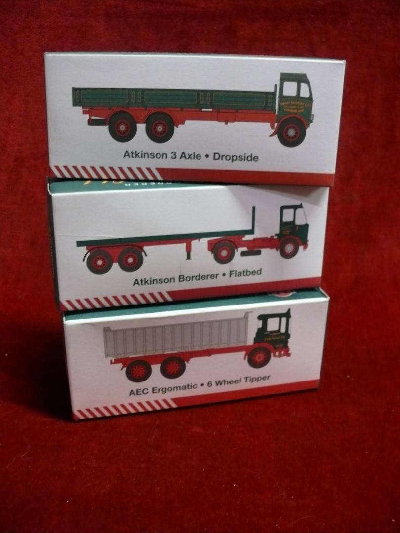 3 Eddie Stobart lorries - Atkinson 3 Axle Dropside, Atkinson Borderer Flatbed and AEC ergomatic 6 wheel tipper, all boxed