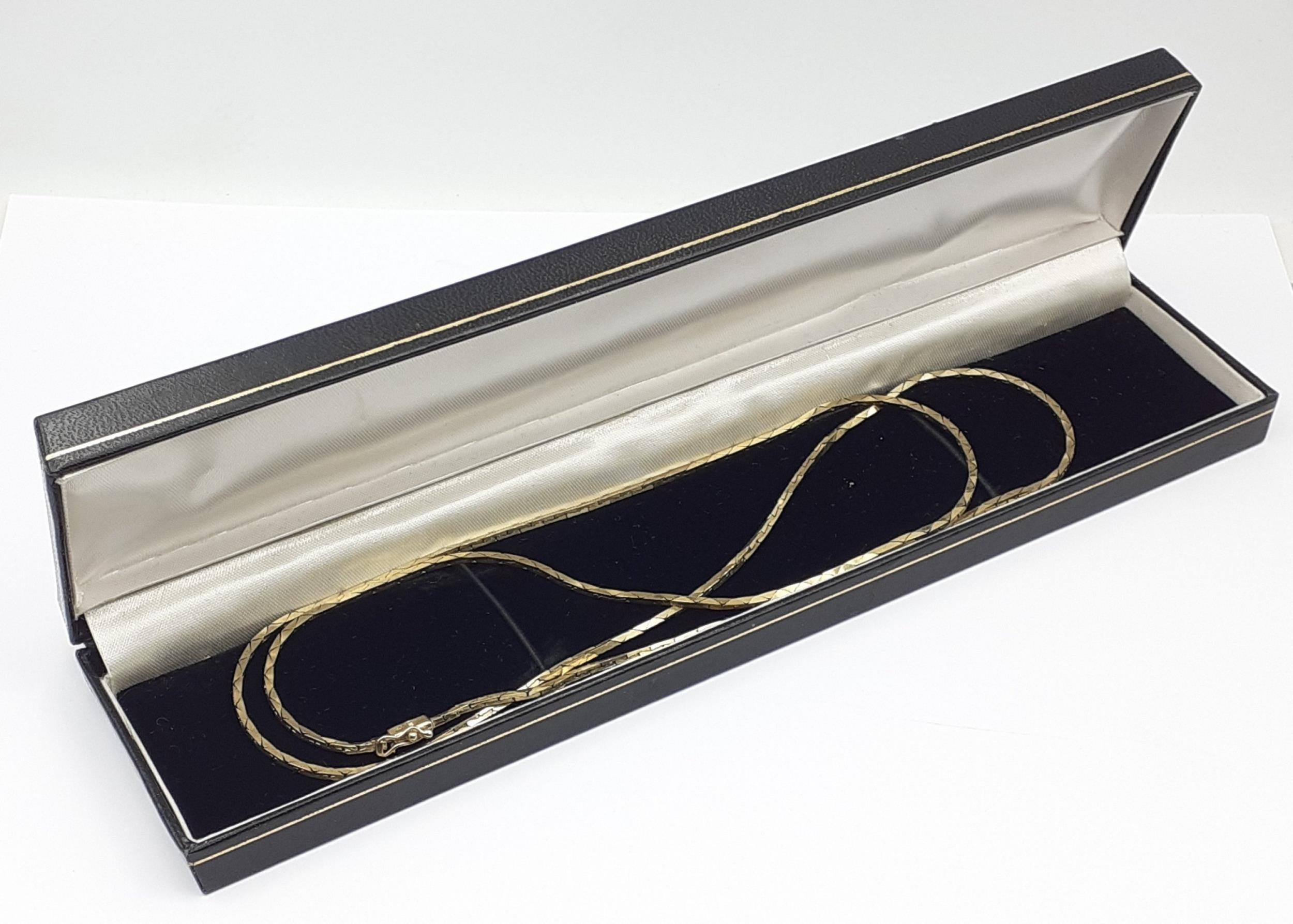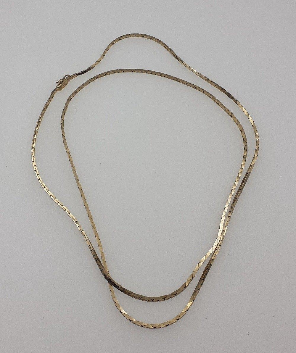 A large 9K marked chain with security clasp. Weight 19g approx, 74cm long approx
