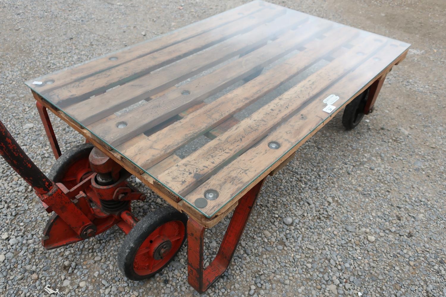Slingsby Hydraulic Pallet Truck converted to a coffee table