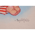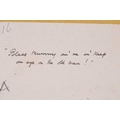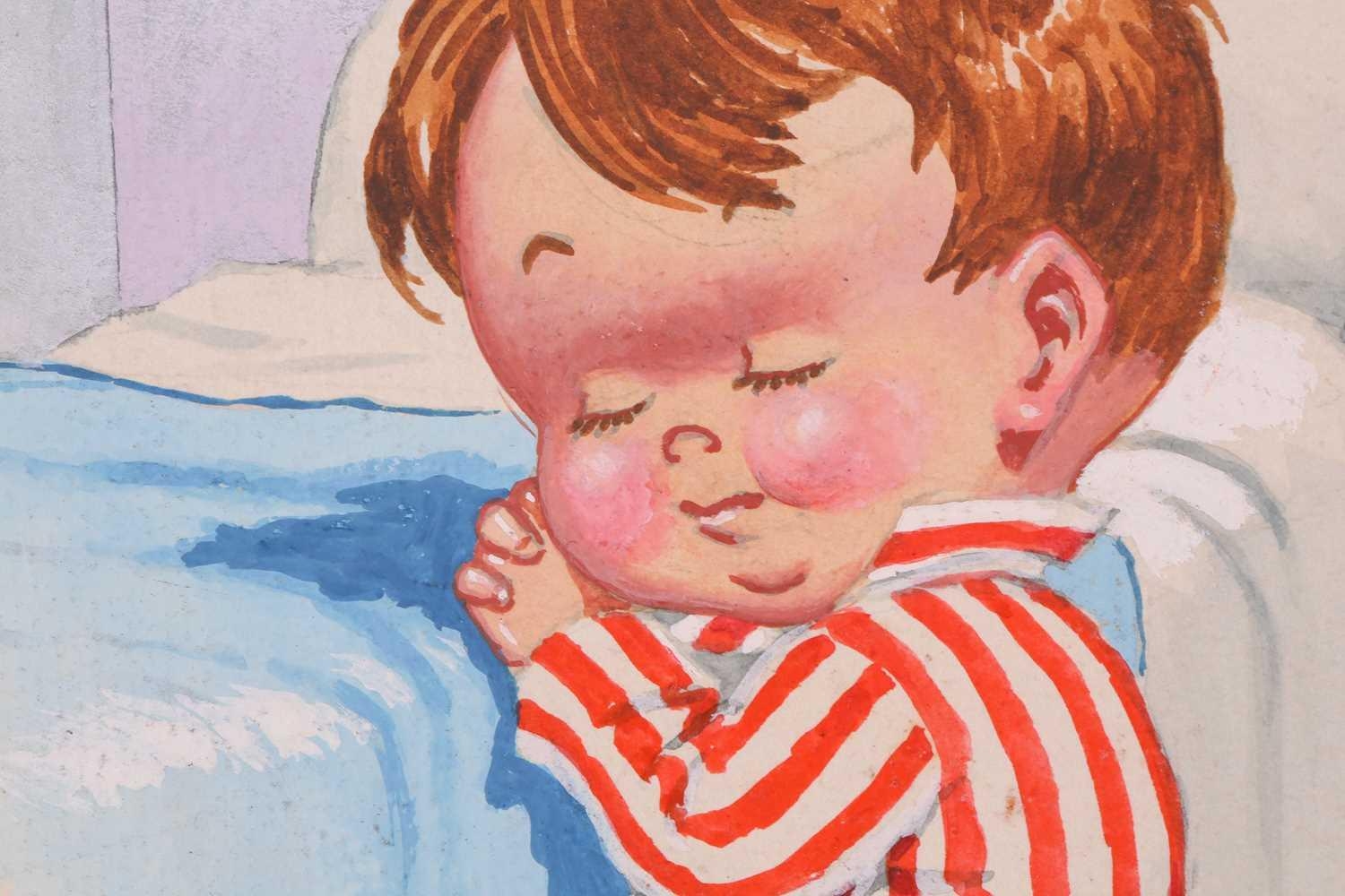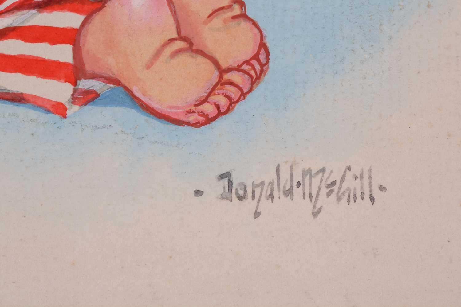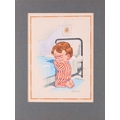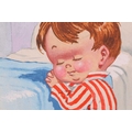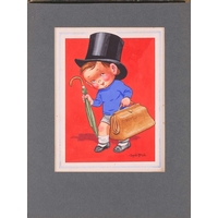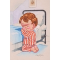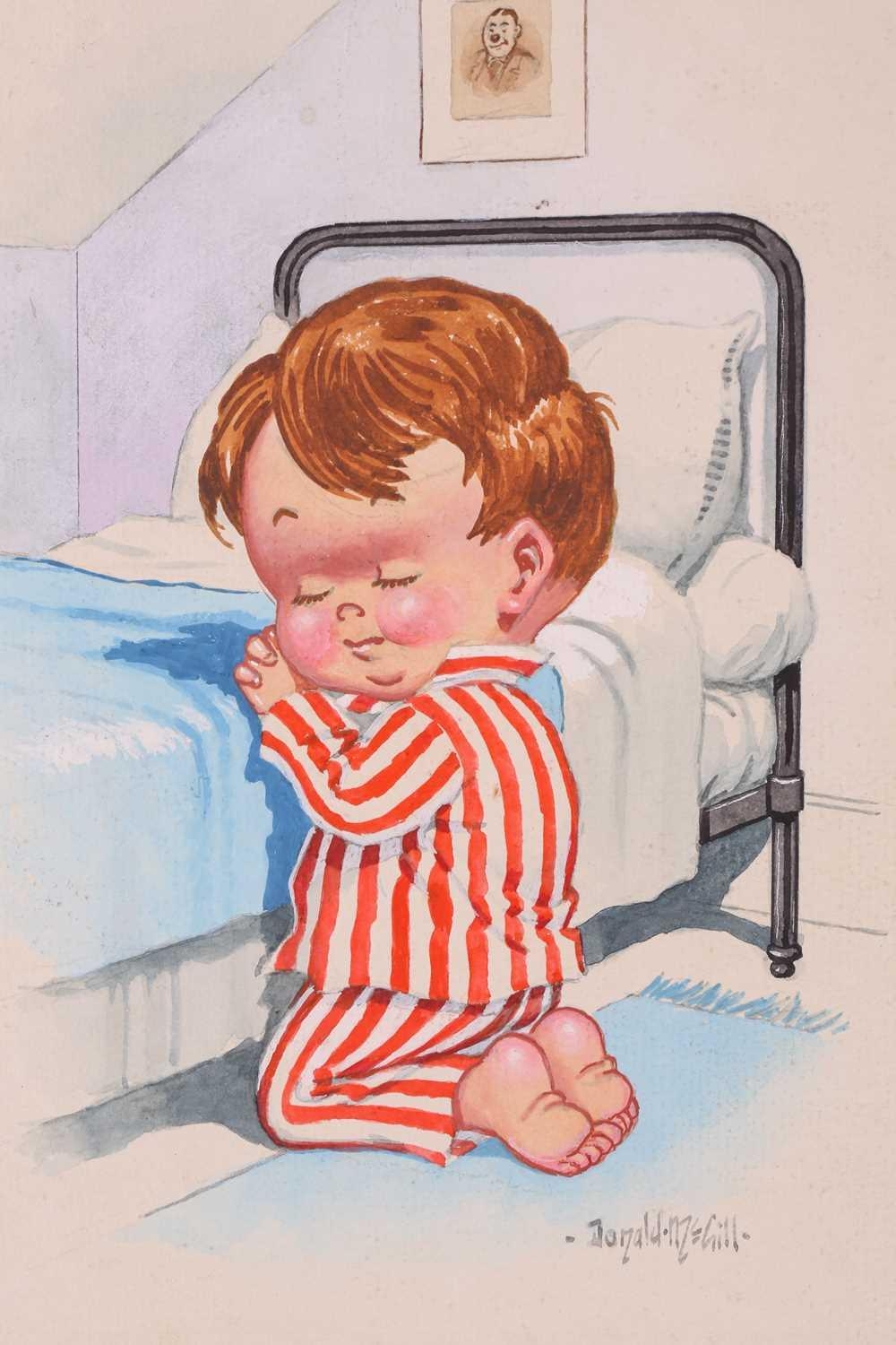 Donald McGill (1875-1962), an unframed signed watercolour, the handwritten text verso reading 'Bless mummy an' me an' keep an eye on the old man!', 22.5 cm x 16.5 cm in a card mount.
