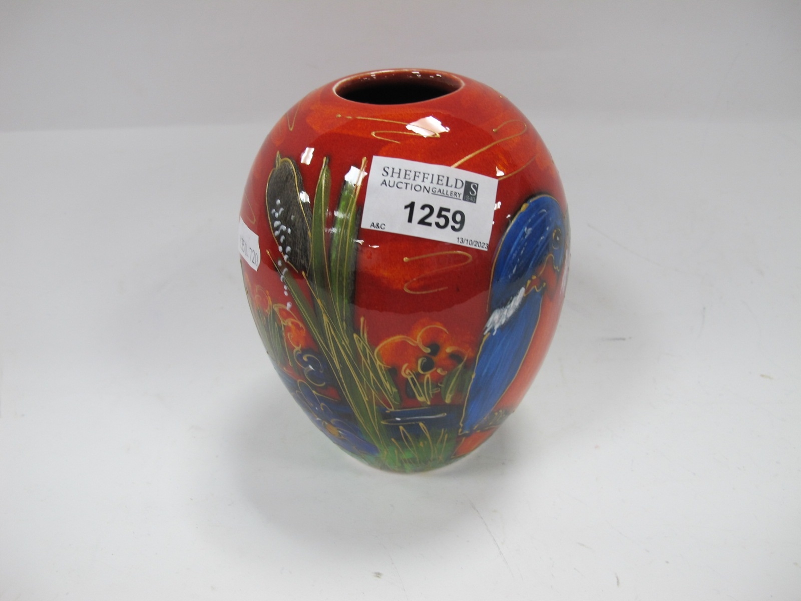 Anita Harris 'Kingfisher' Delta Vase, gold signed, 14cm high.