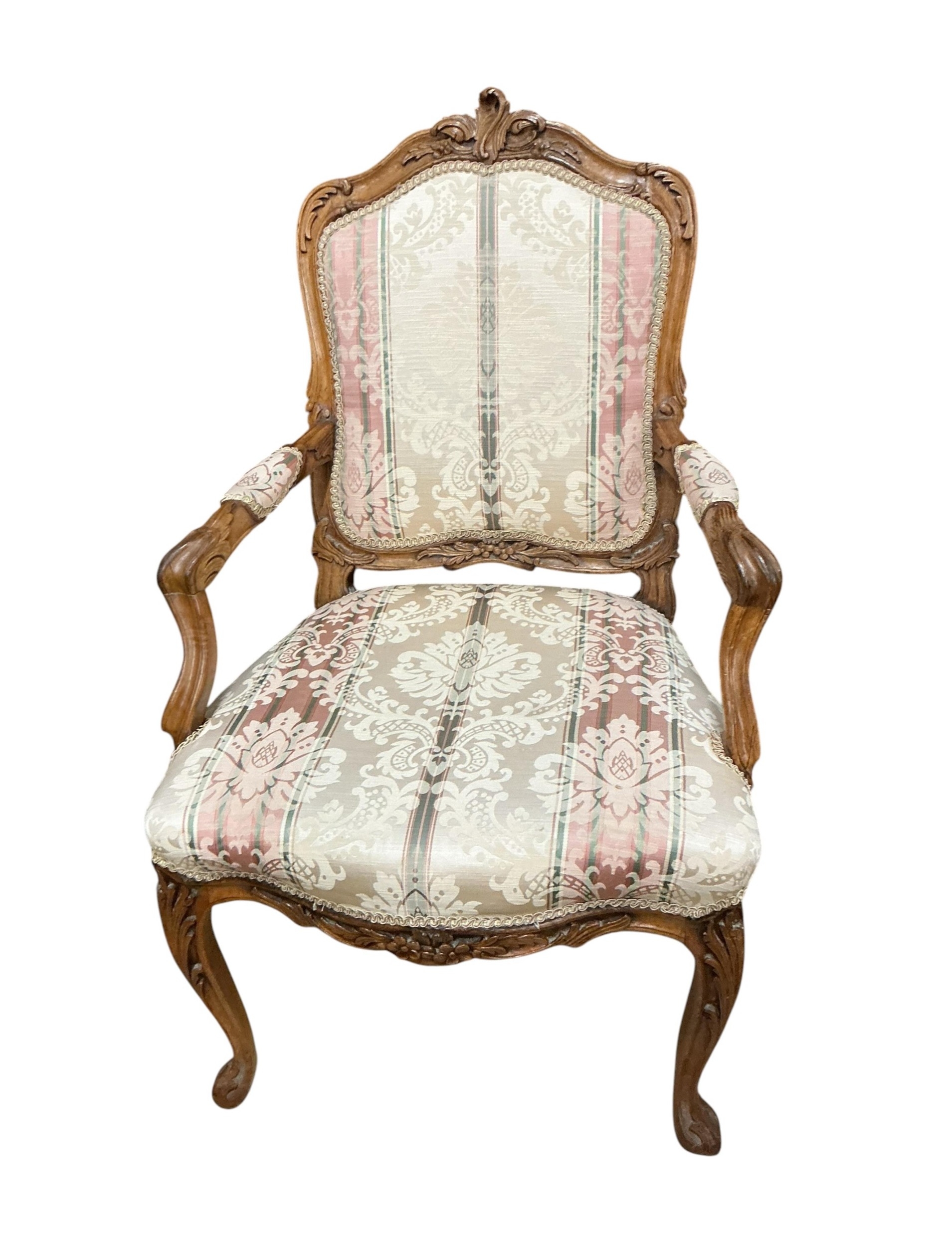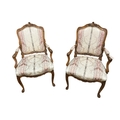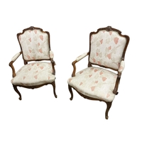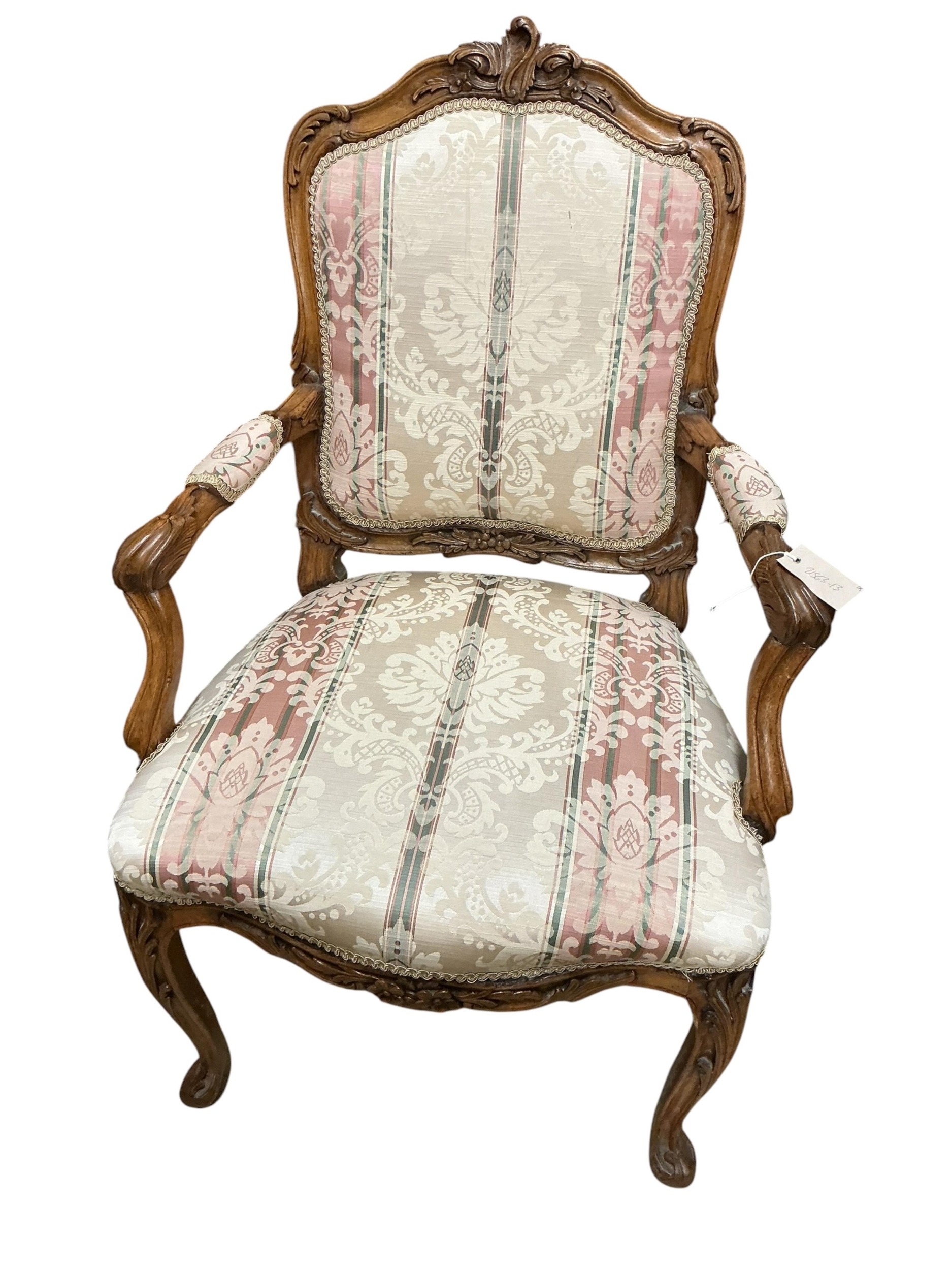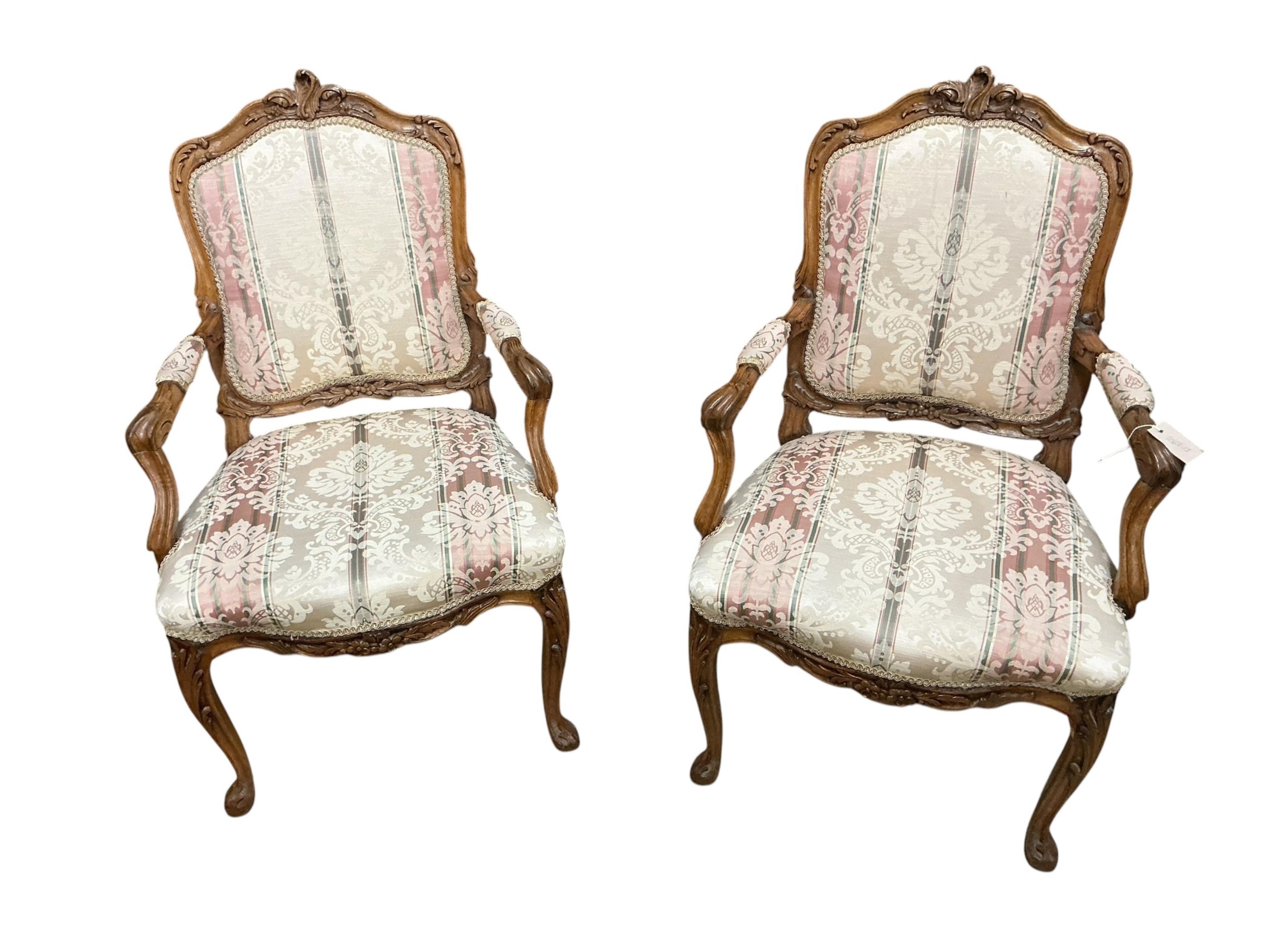 A pair of early 20th century French walnut fauteuils, width 65cm, depth 50cm, height 103cm
