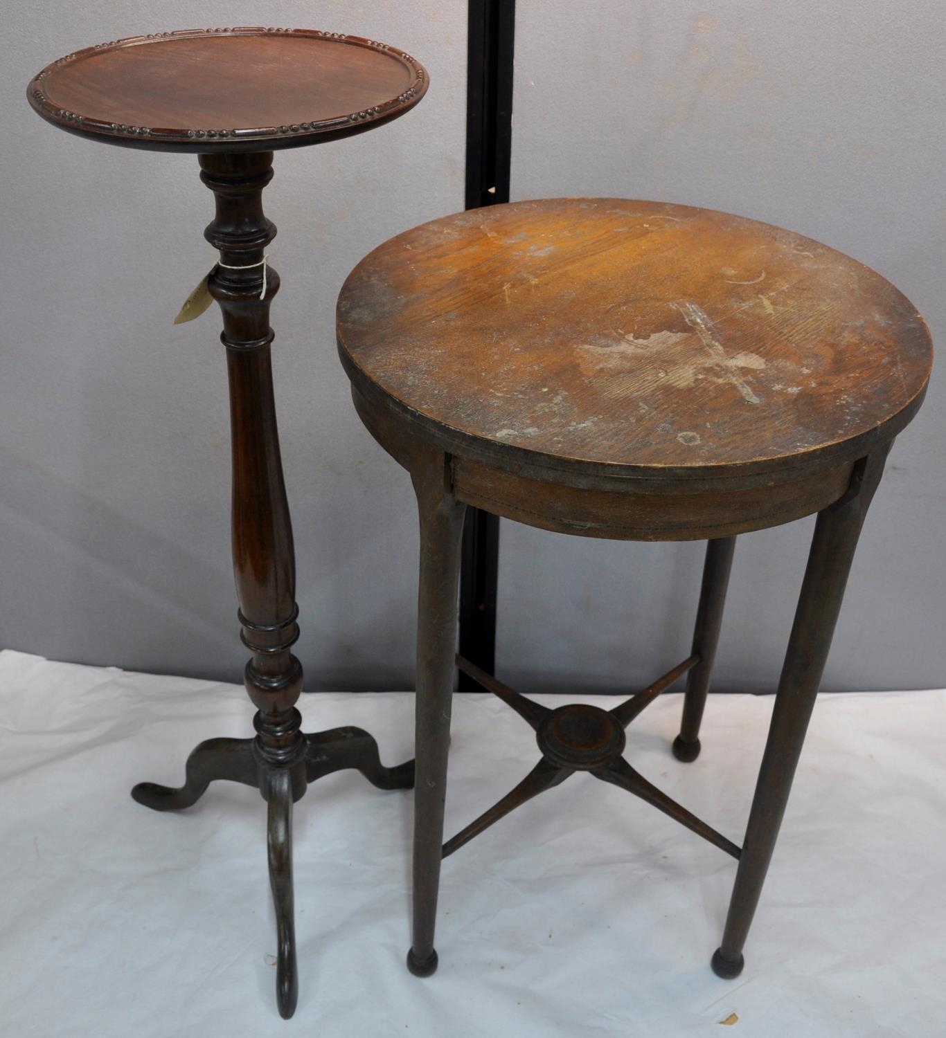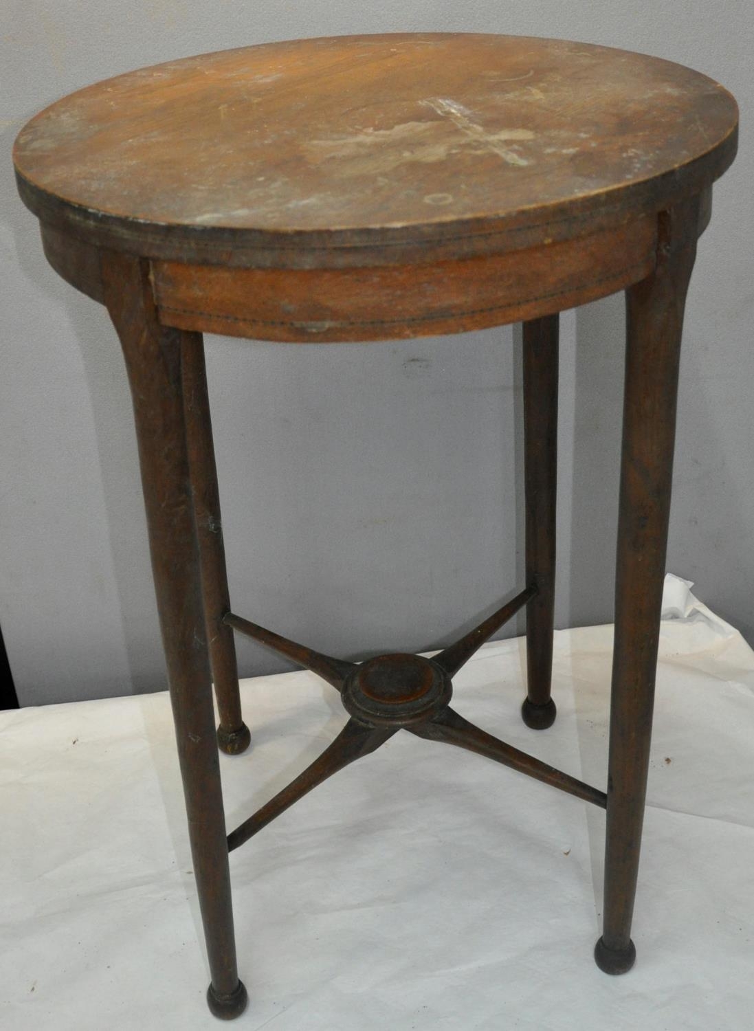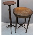 OAK CIRCULAR OCCASIONAL TABLE AND TORCHIERE/PLANT STAND