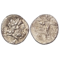 Ancient Greek: Thessaly, Thessalian League silver Stater, late 2ndC-mid 1stC BC. Head of Zeus right, wearing oak wreath. / Rev: Athena Itonia striding right. 5.89g. VF/F.