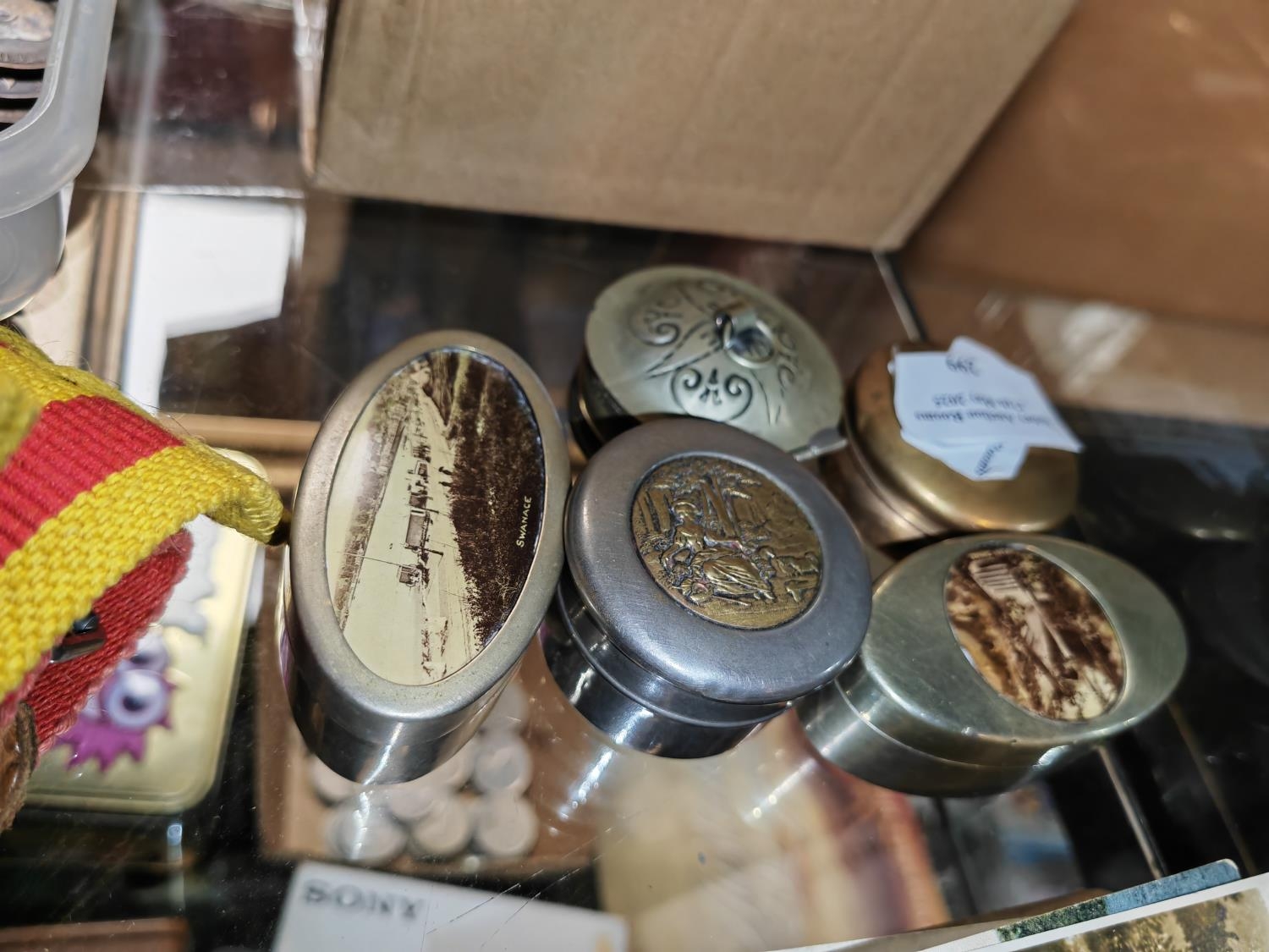 5 Trinket Boxes Mostly Silver Plate Some With Pictures To Lids
