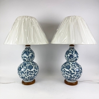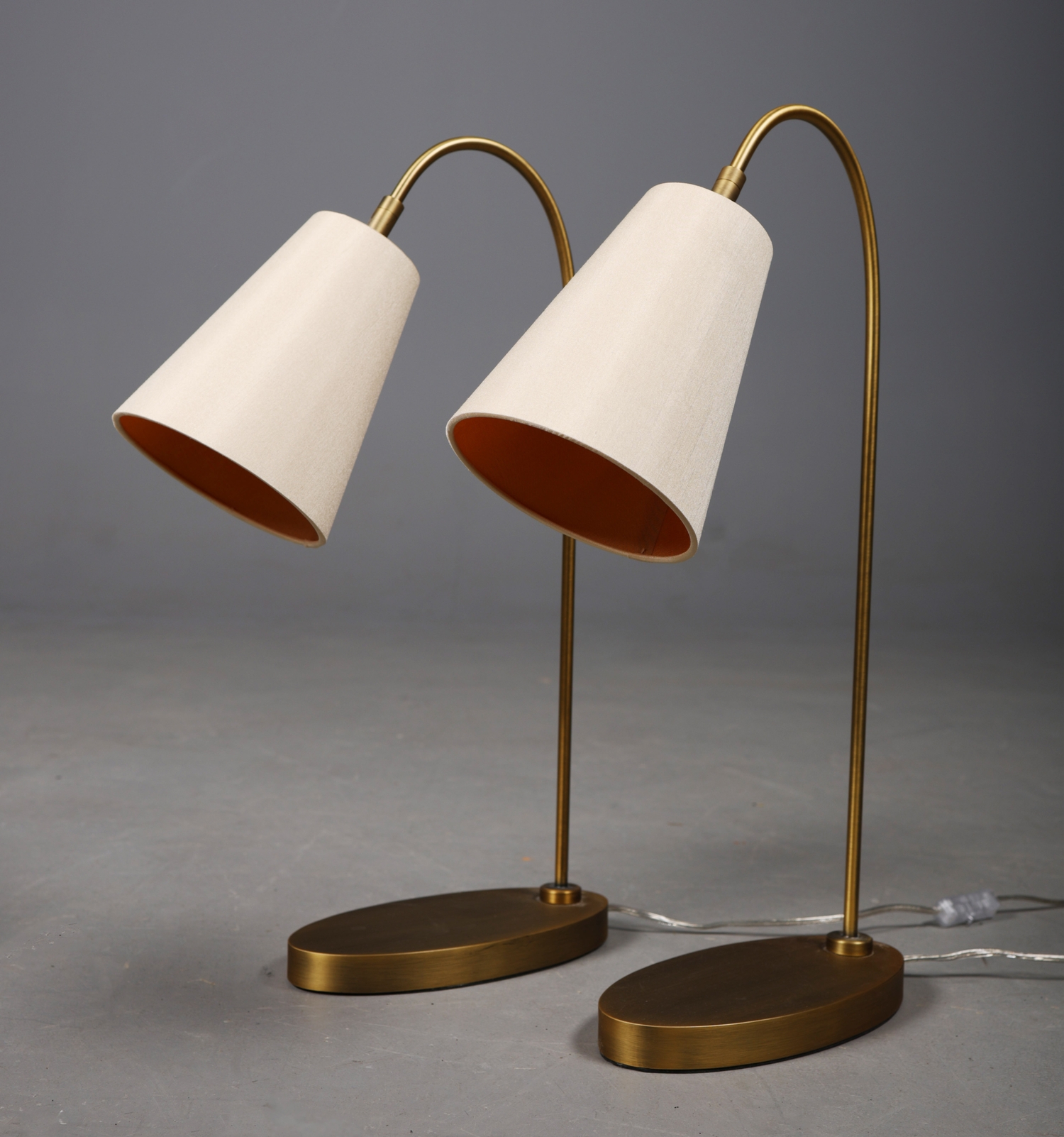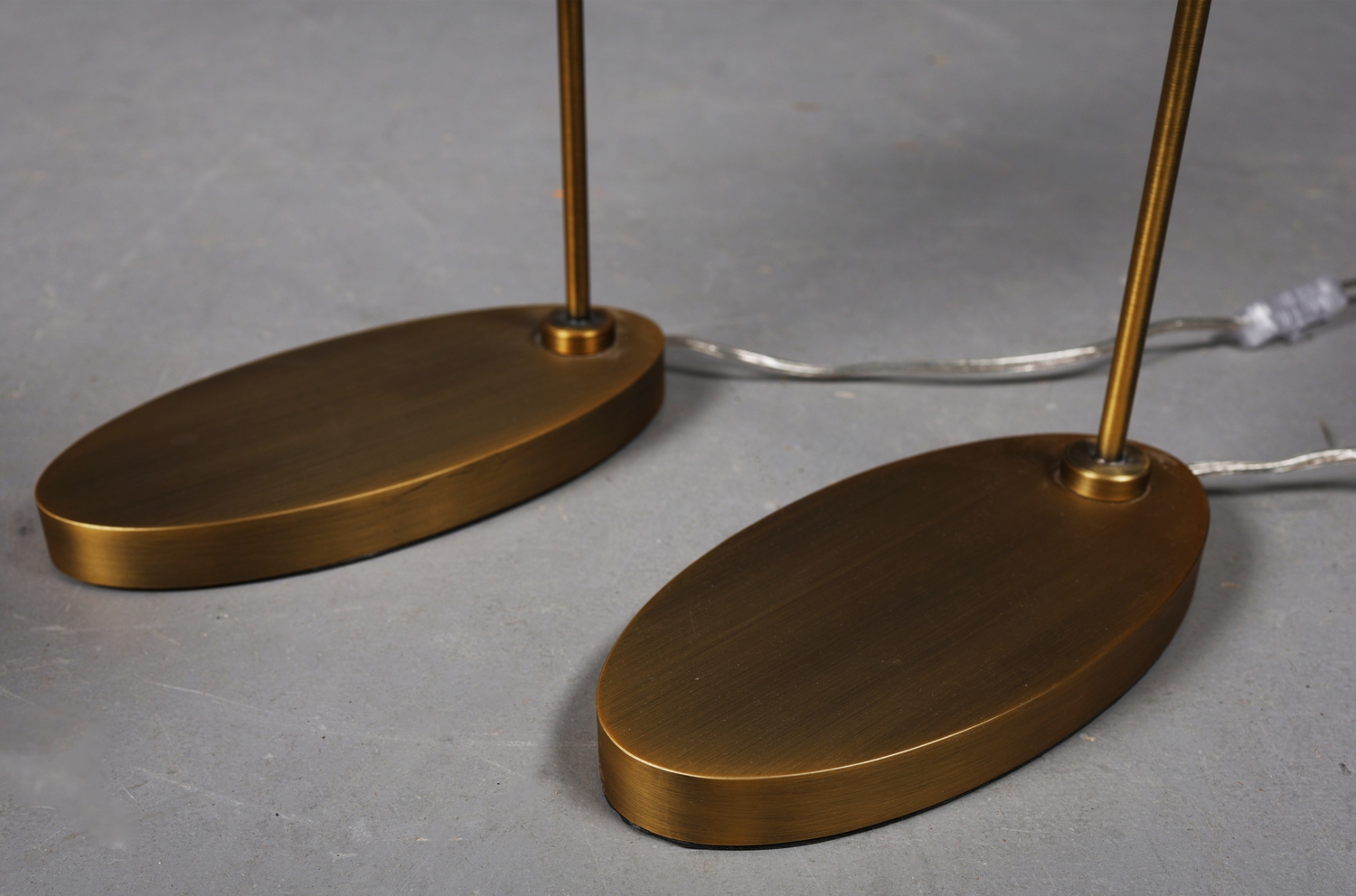 R V ASTLEY STILE DESK LAMPS, A PAIR. (2). with shades. (2).