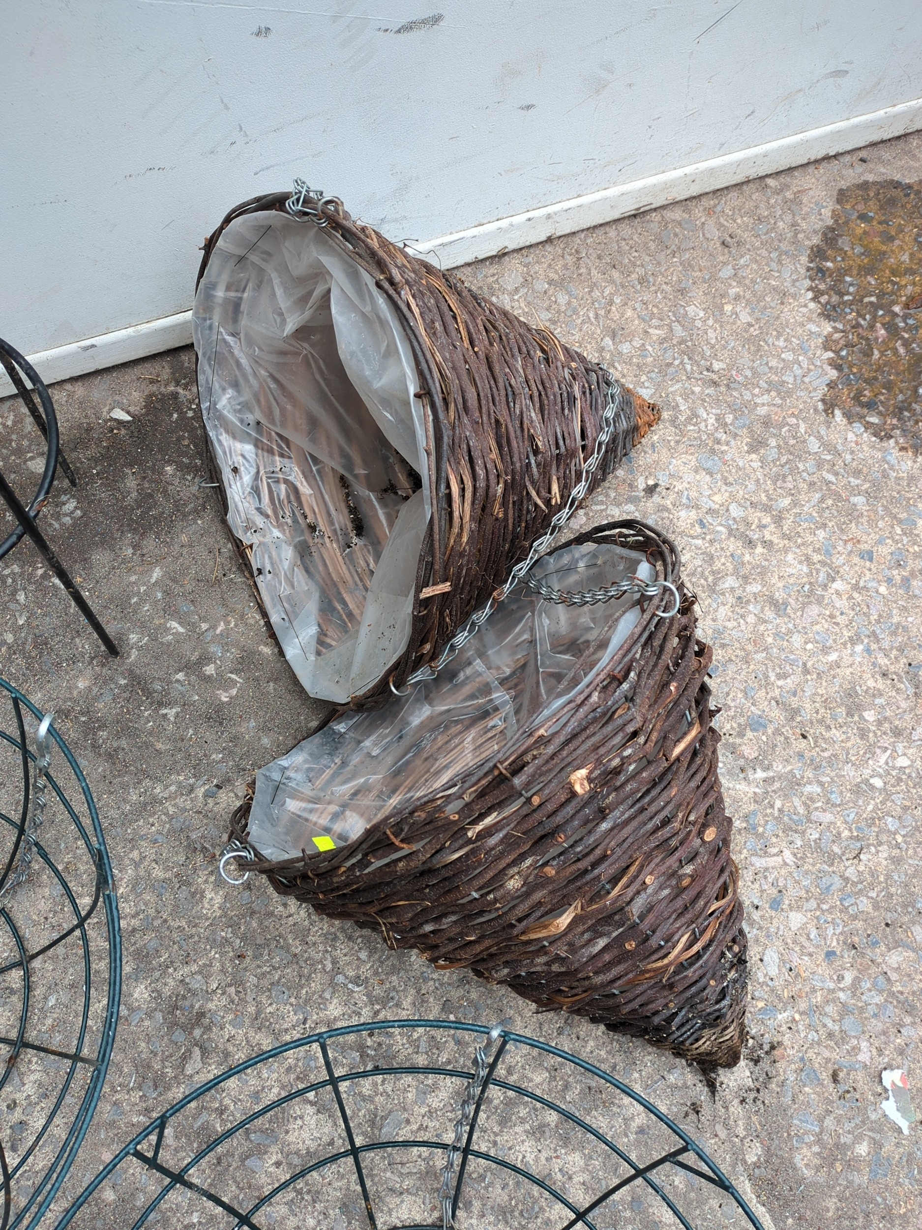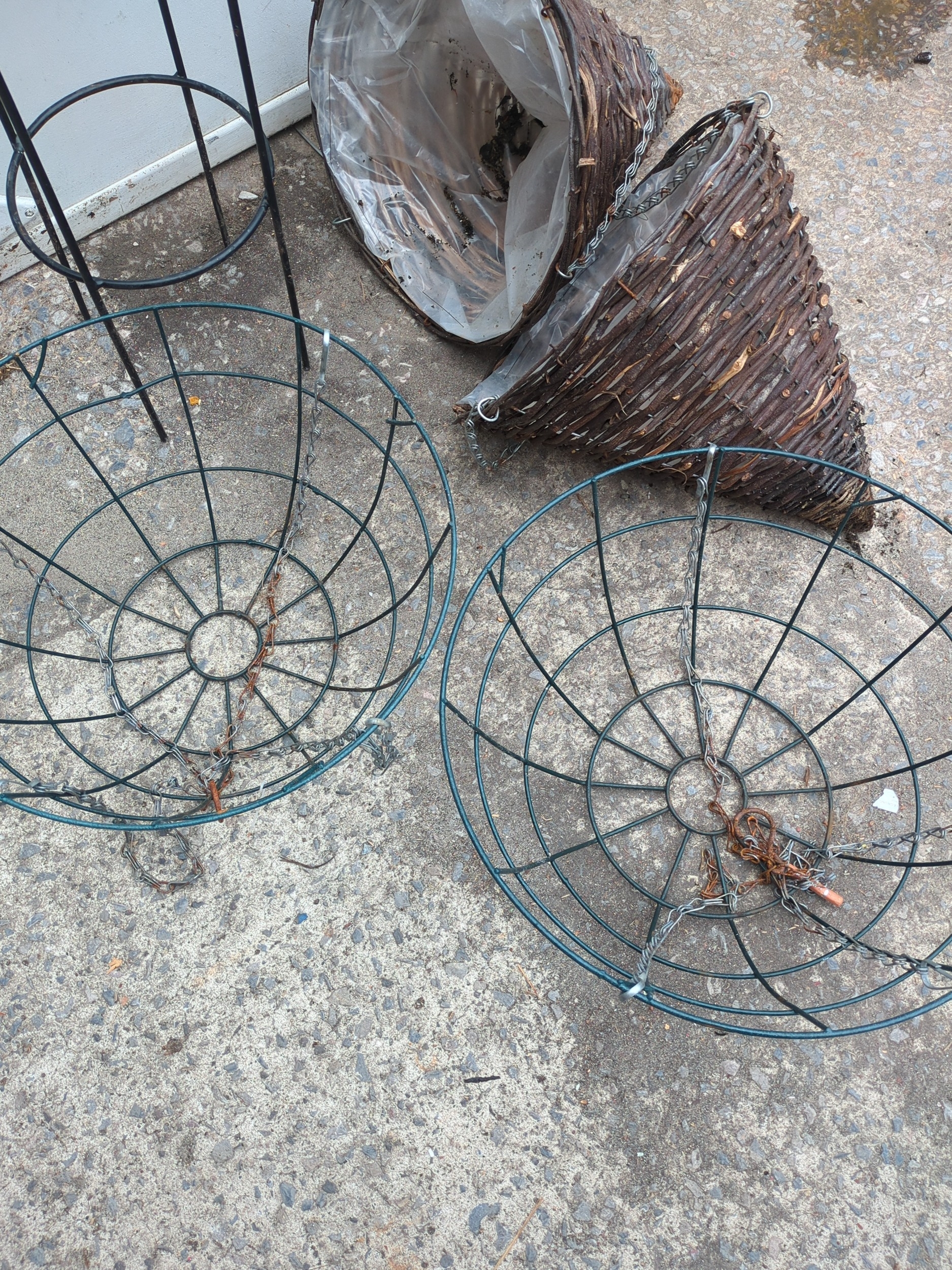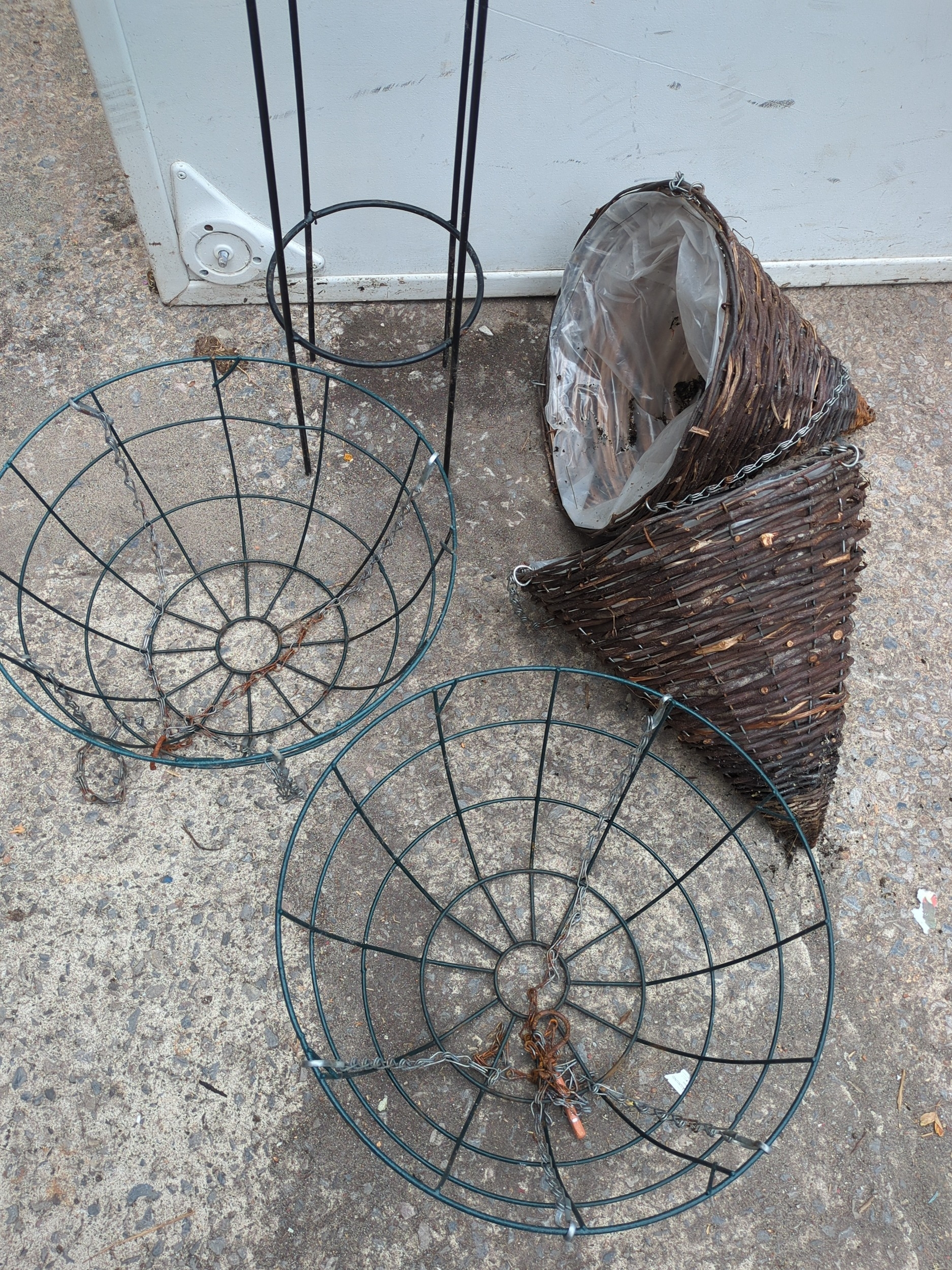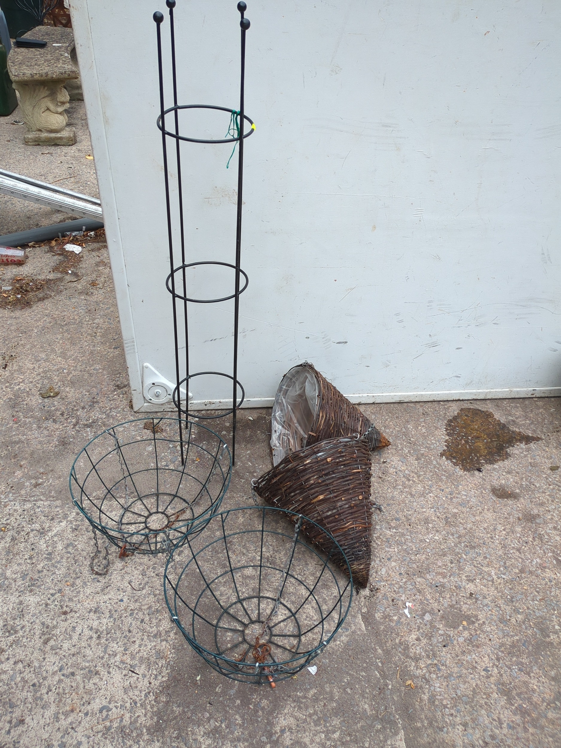 Metal Plant Stand with Wicker Hanging Baskets