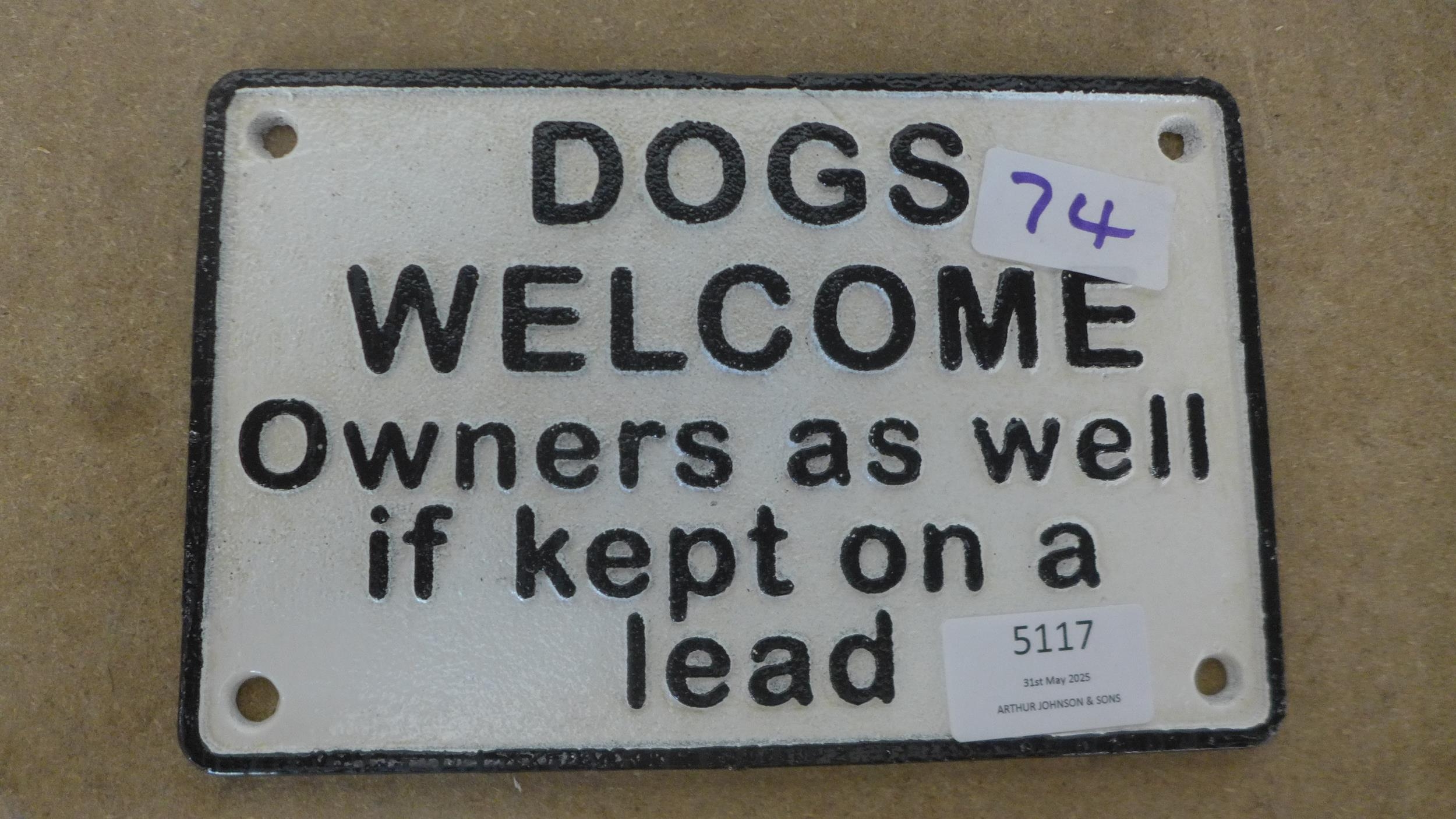 A cast metal Dogs Welcome sign *This lot is subject to VAT