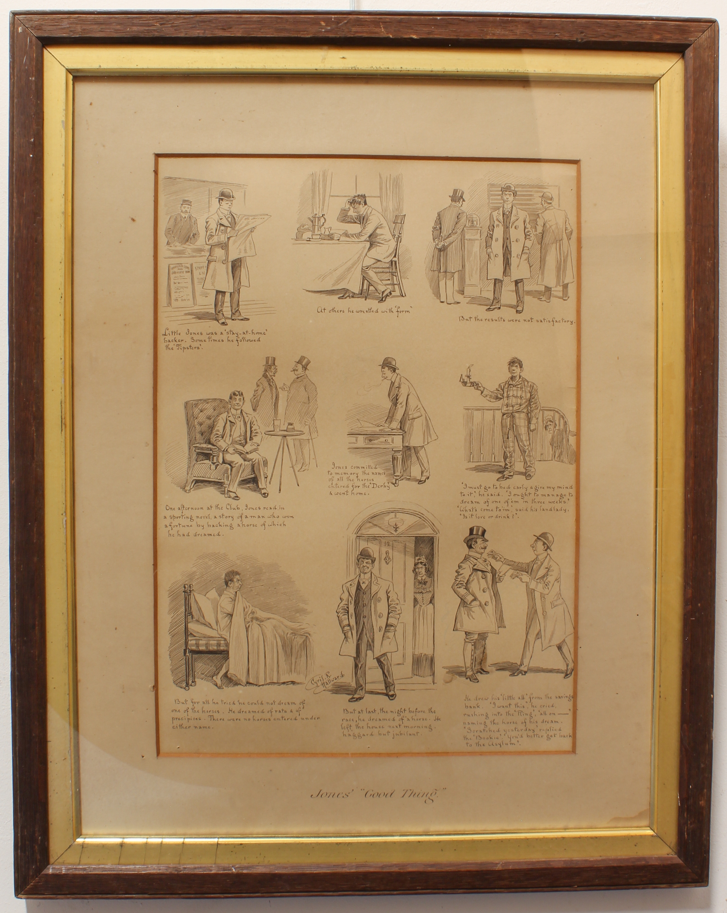 1. After CYRIL R. HALLWARD - 'Jones' "Good Thing" from 'The Illustrated Sporting and Dramatic News' May 25th 1895 edition (43 x 30 cm, frame 63.5 x 51 cm).