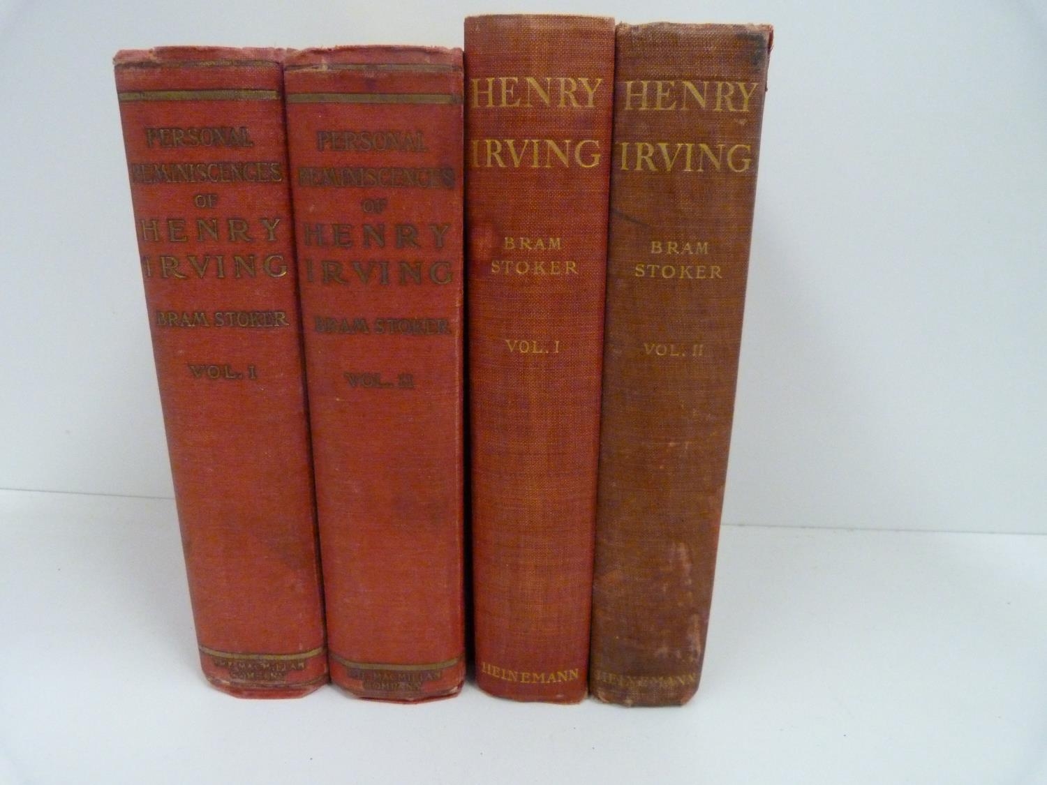 STOKER BRAM. Personal Reminiscences Of Henry Irving. 2 vols. Frontis & illus. Orig. red cloth gilt. 1st edition, 1906; also the 2 vol. US 1st edition, New York, 1906. (4).