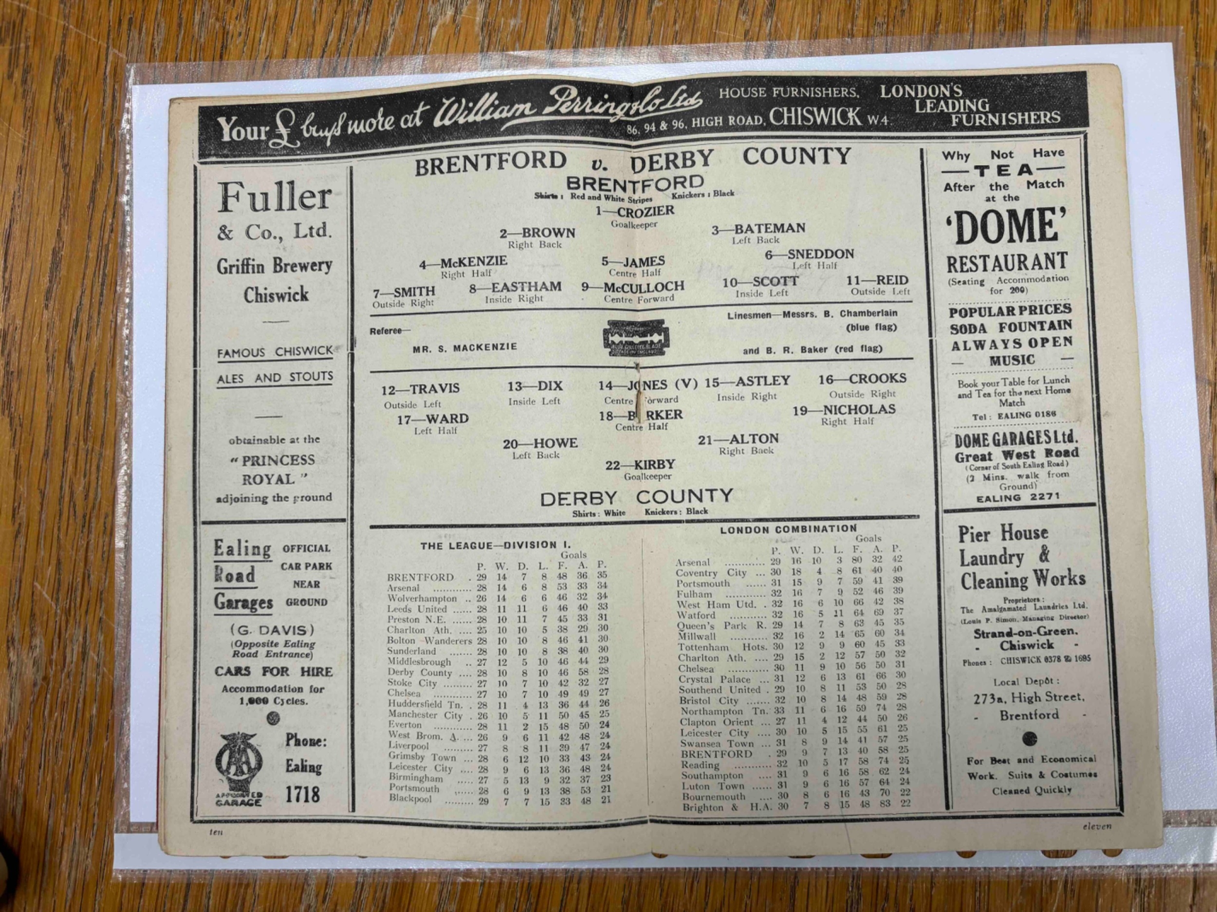 1937/38 Brentford v Derby County, Middle page loose, no writing