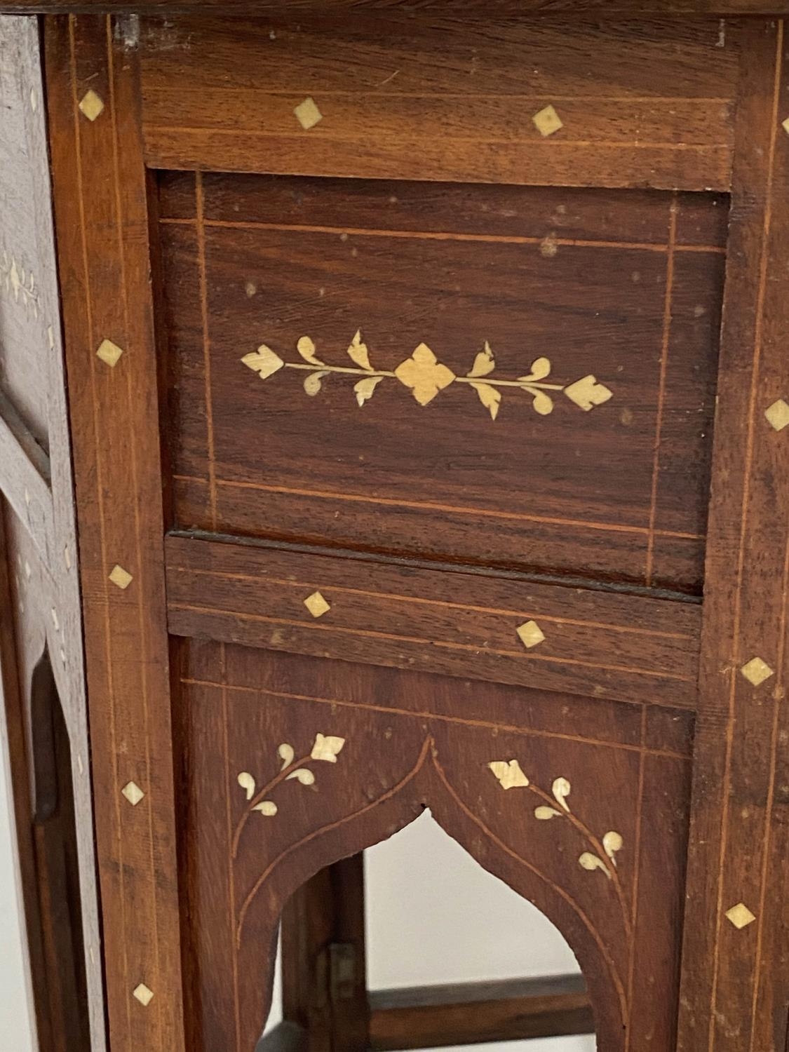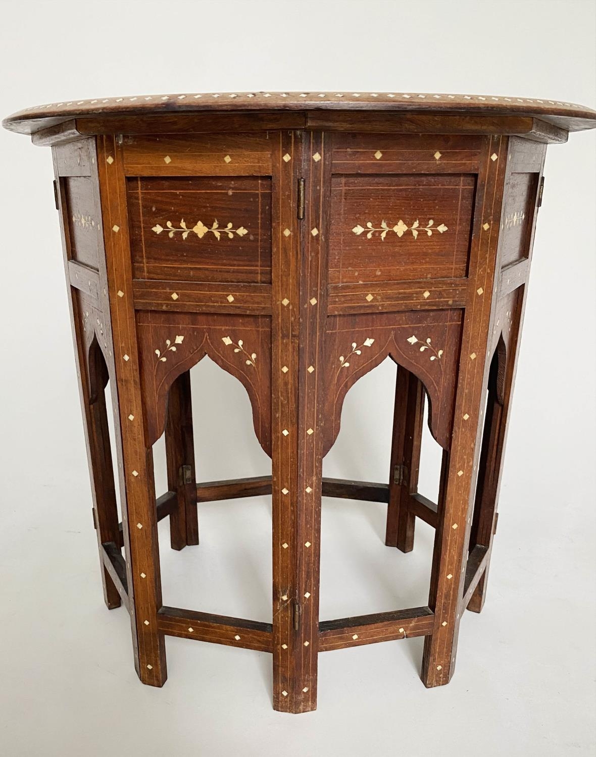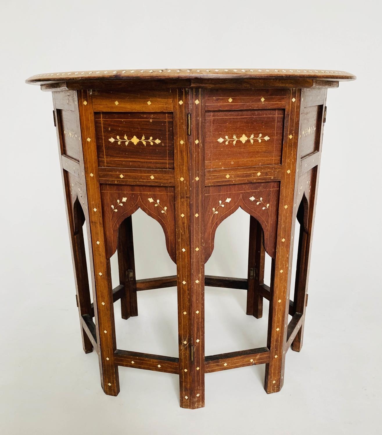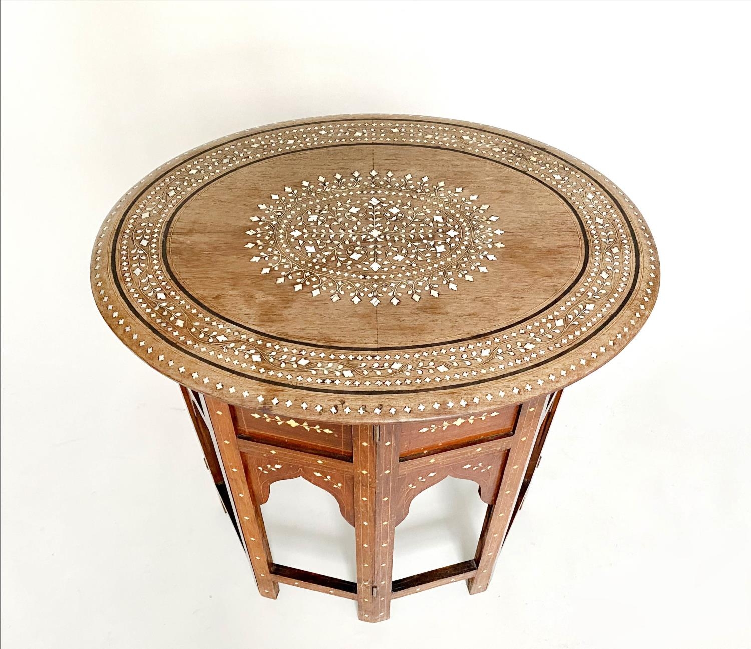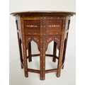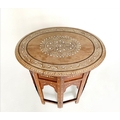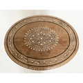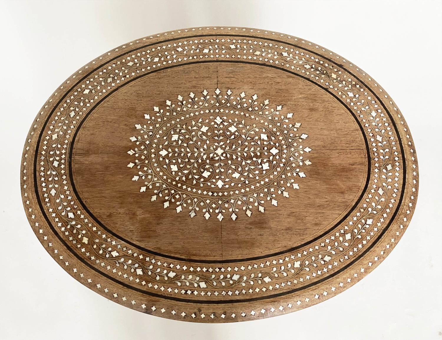 HOSHIARPUR OCCASIONAL TABLE, 19th century North Indian hardwood, bone and ebony inlaid, oval and conforming base, 51cm x 41cm x 51cm H.
