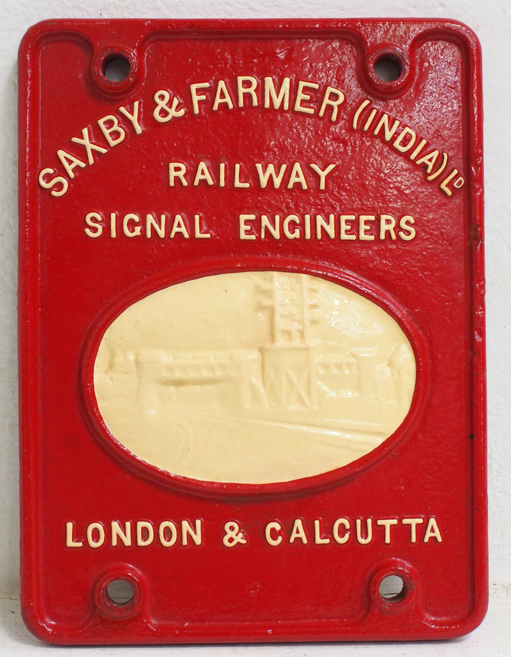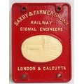 Saxby & Farmer London & Calcutta C/I makers plate 9"x 12", restored original back. (C2) (Dispatch by Mailboxes/Collect from Banbury Depot)