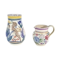 Comprising a baluster vase with a leaping gazelle motif (pattern 438/KZ) and a small cream jug with floral sprays, both with painted marks to base.