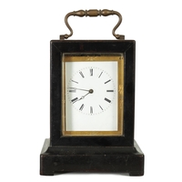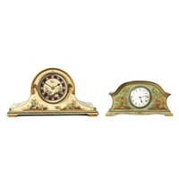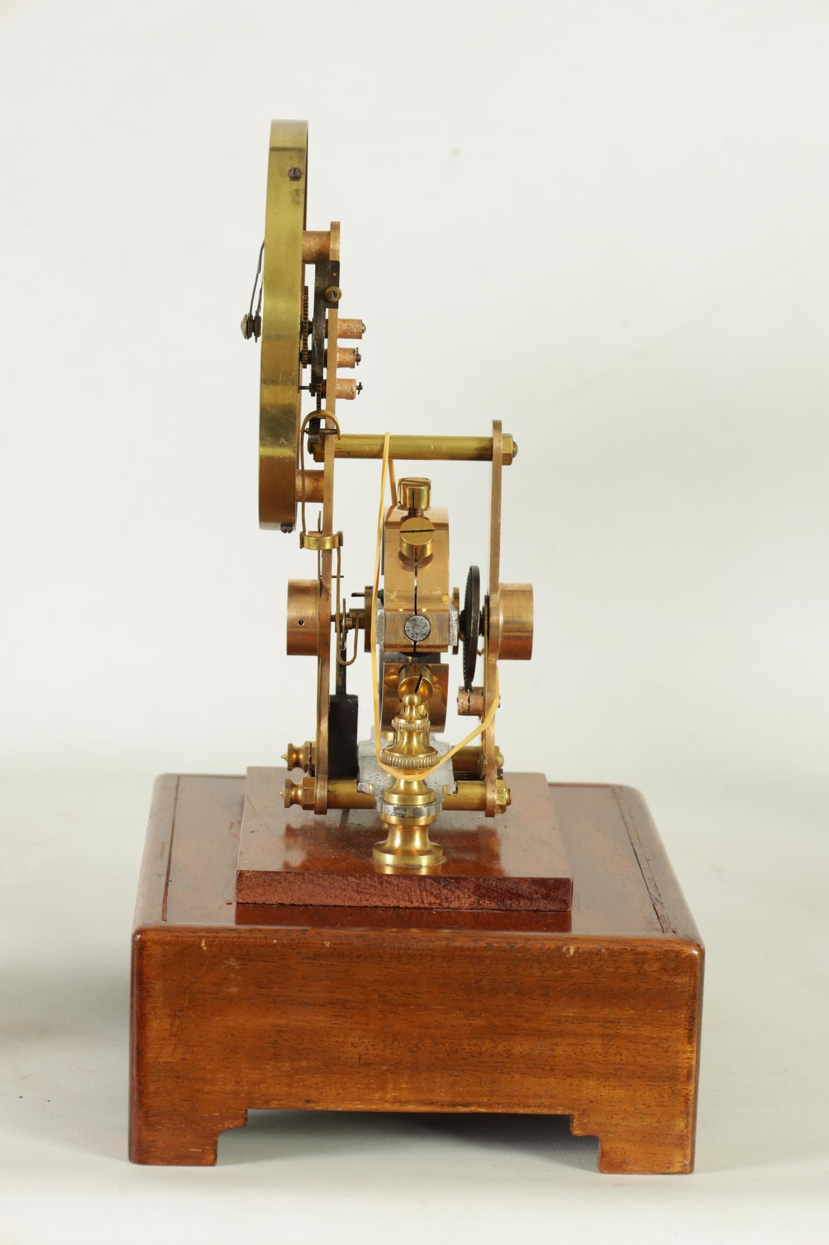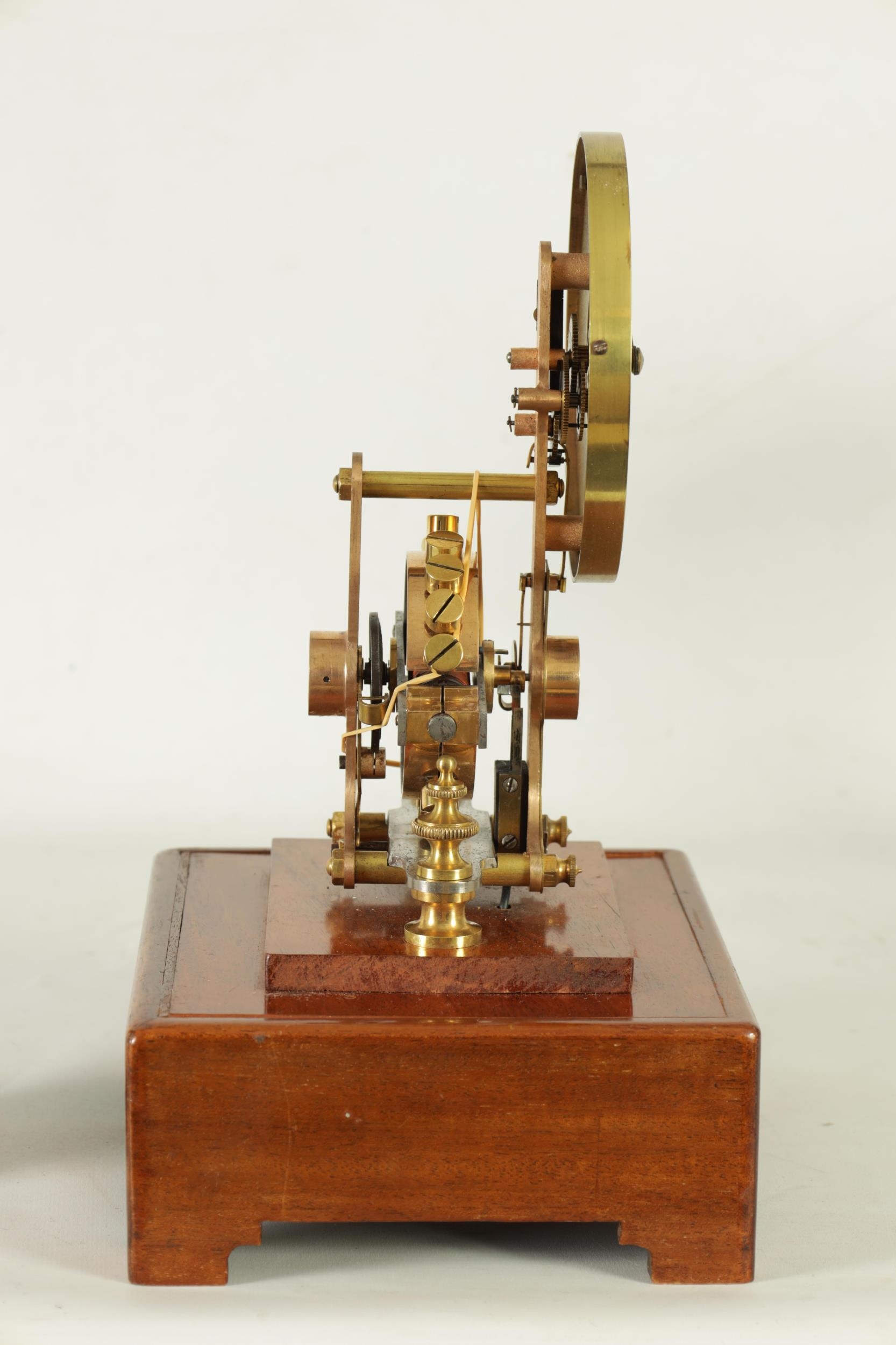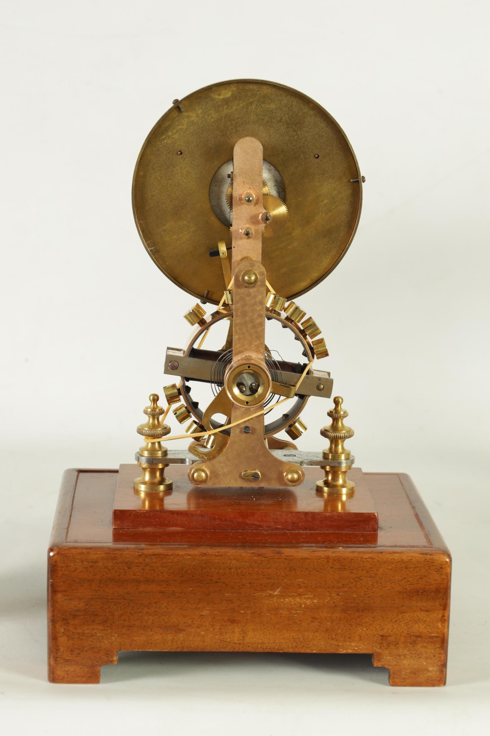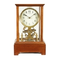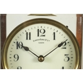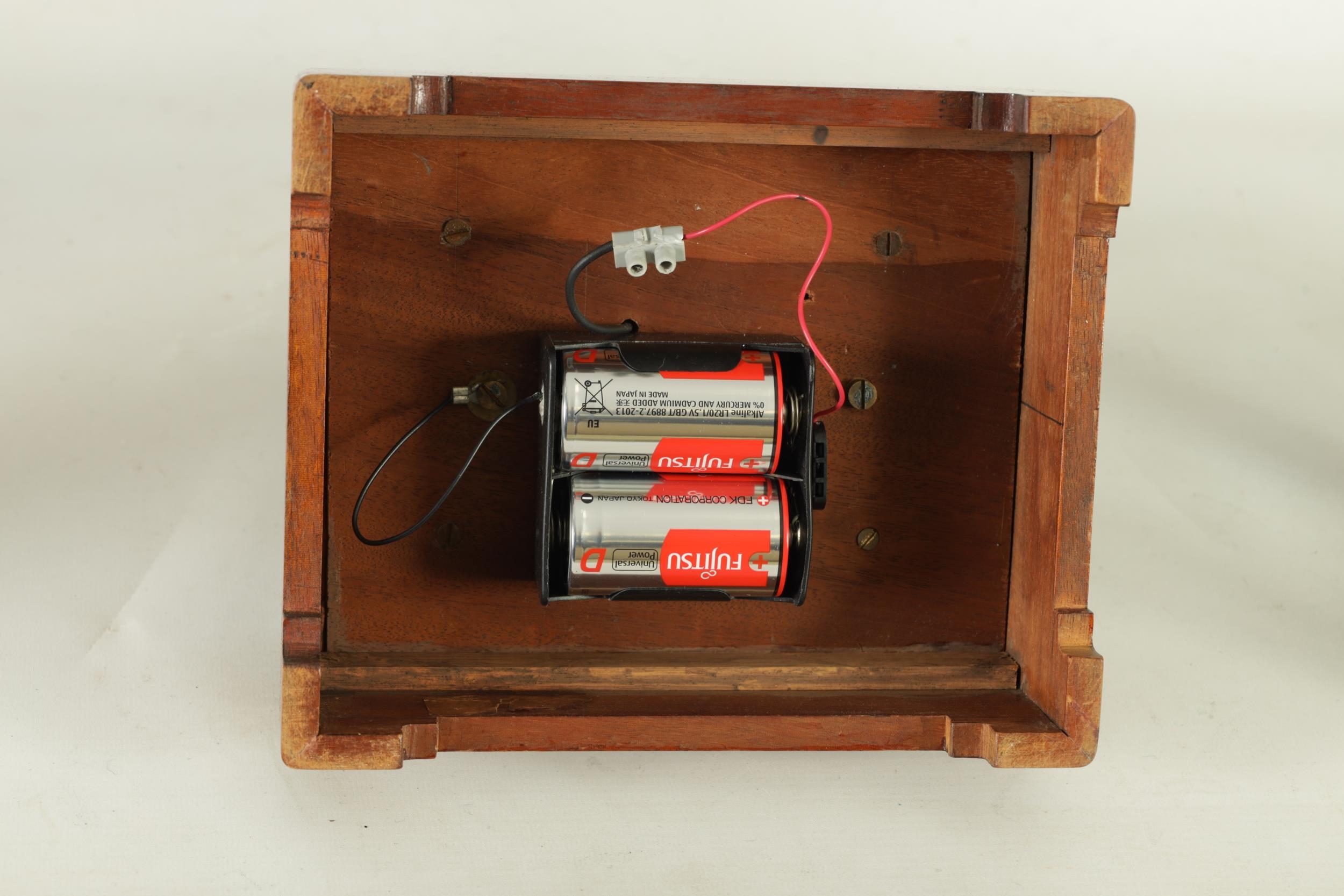 EUREKA CLOCK CO. LTD. LONDON AN EARLY 20TH CENTURY ENGLISH MAHOGANY FIVE GLASS ELECTRIC MANTEL CLOCK the moulded case inset with bevelled glass panels enclosing a 4.5" enamel dial with Arabic numerals fronting a battery-powered movement with weighted magnetic impulse wheel (33.5cm high)