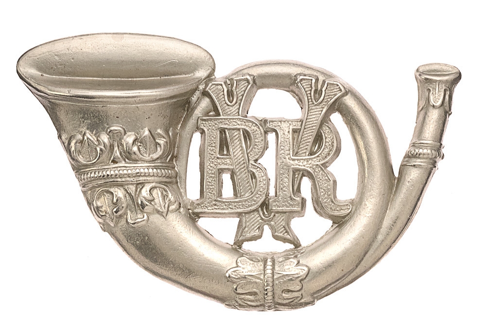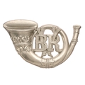 Bangalore Volunteer Rifles Indian Army helmet badge c. 1901-17. Good scarce British made die-stamped white metal coiled bugle horn with BVR cypher to voided centre. Toned loops. VGC Redesignated 6th Bangalore Bn. in 1917