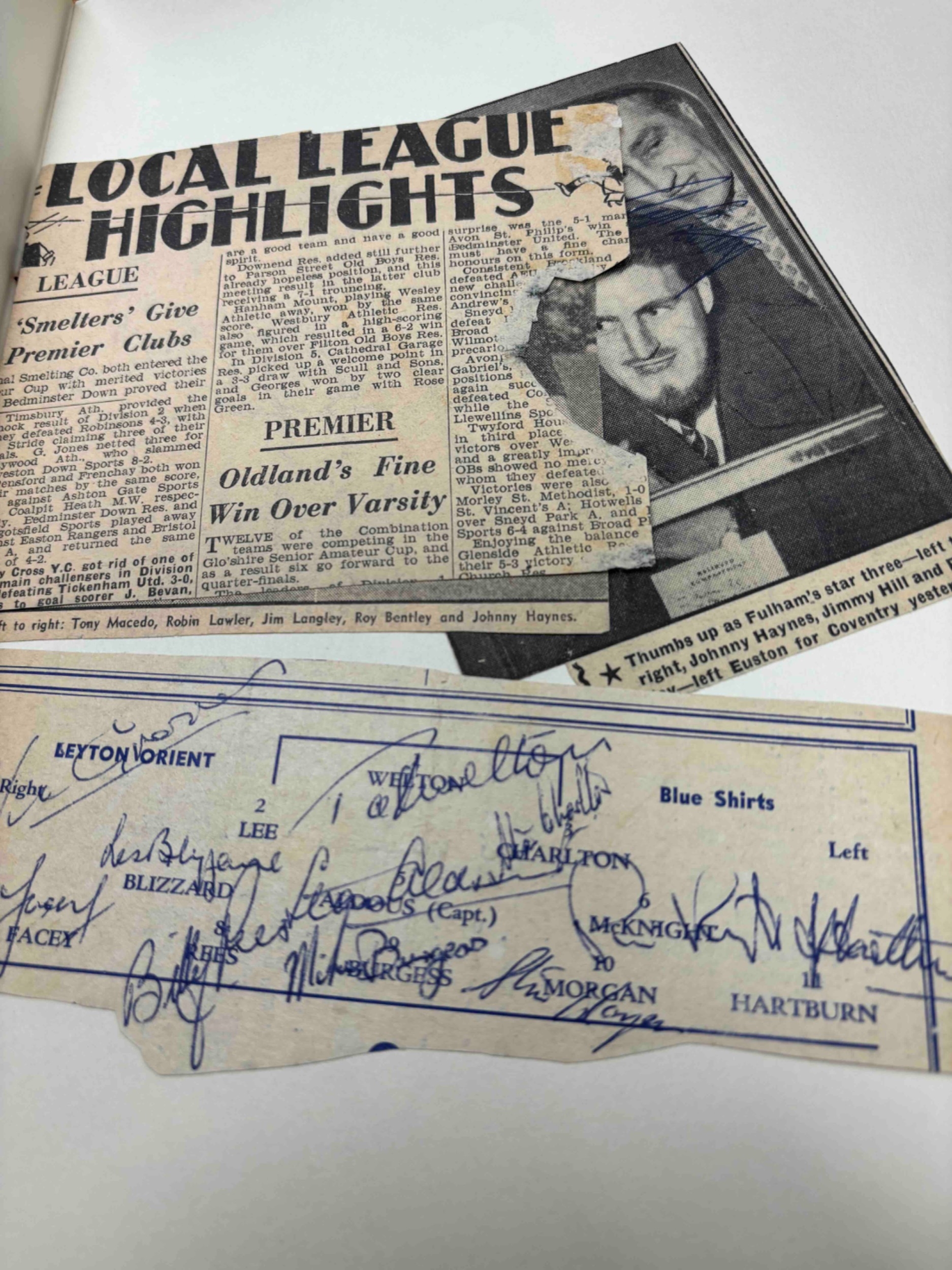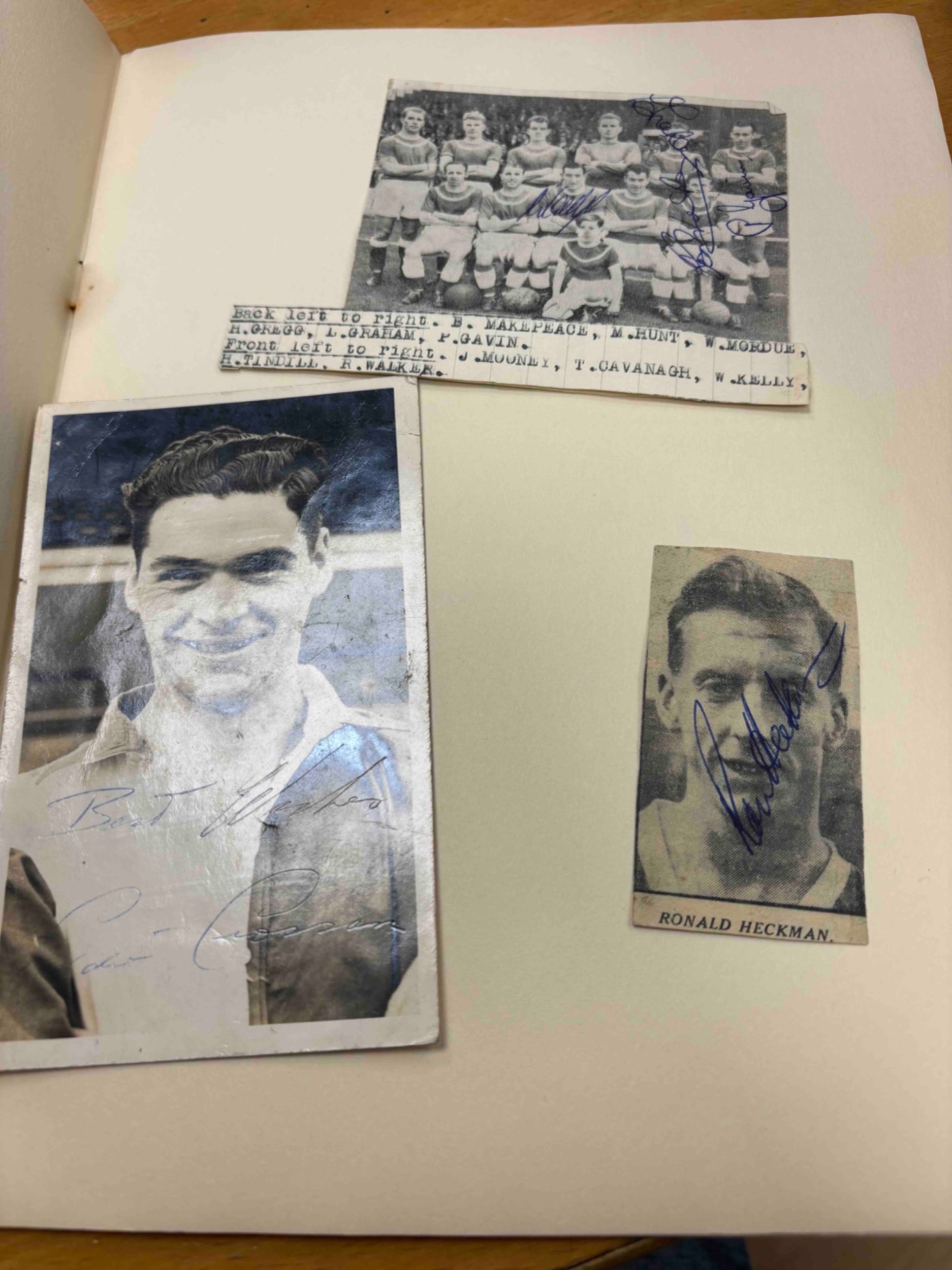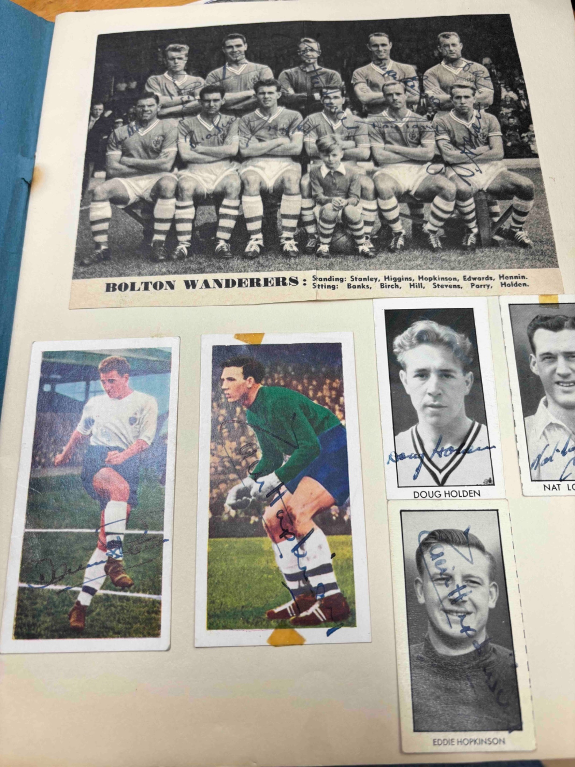 Signed Scrapbook, includes Team Groups with signatures, Bolton Wanders TG signed plus Hopkinson,Lofthouse and Holden, Blackpool TG, Liverpool TG, Walsall tg, Tranmere x 4 on TG, Port Vale x 6 TG, Cardiff Cityx 8 on TG, plus others, some going loose.