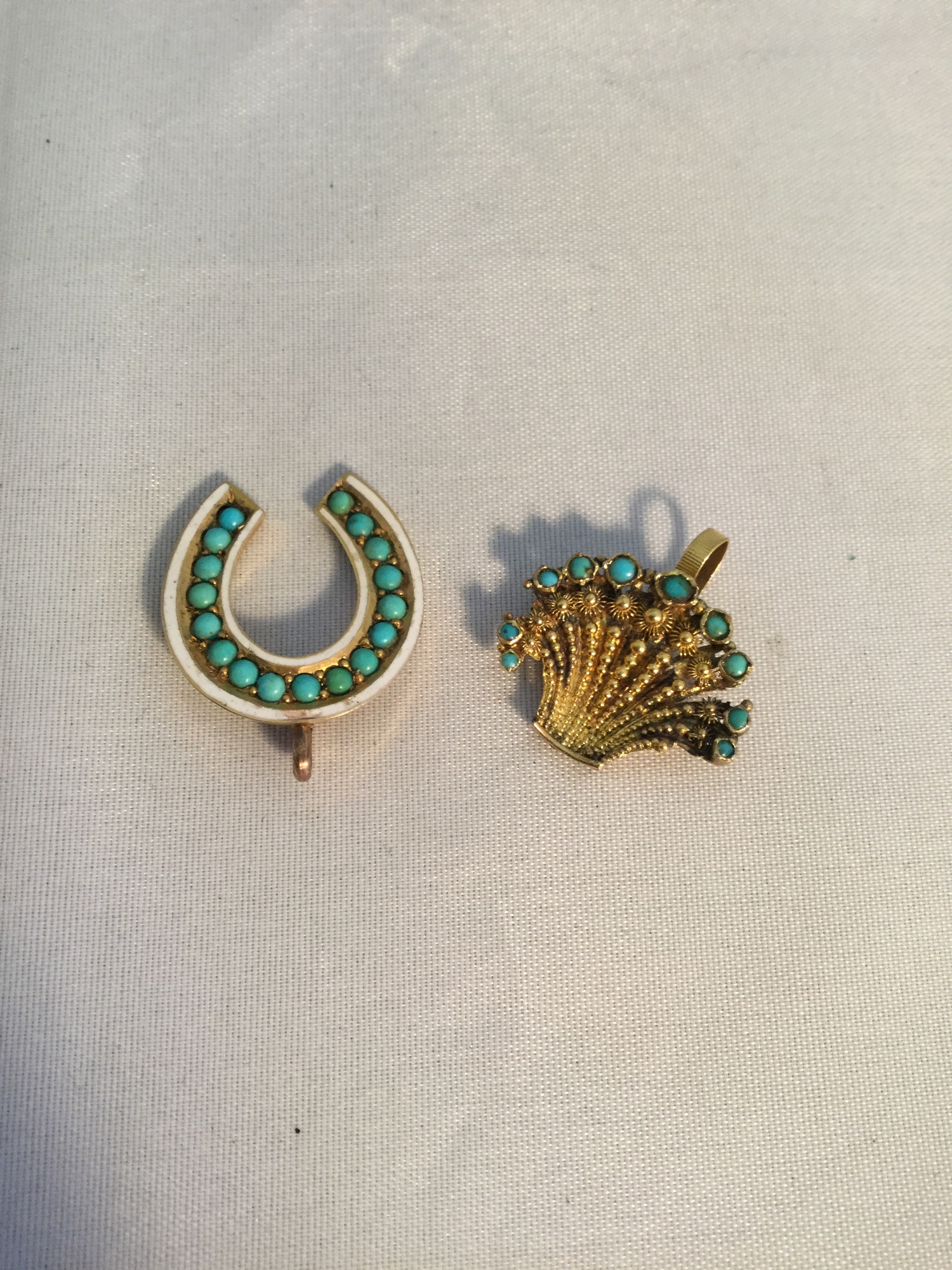 of horseshoe design, possibly converted, together with a giardinetto style pendant (2) -