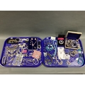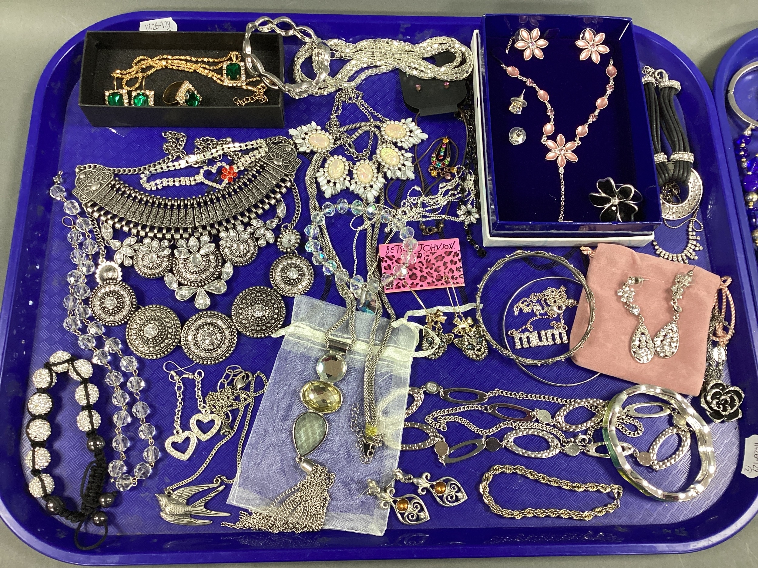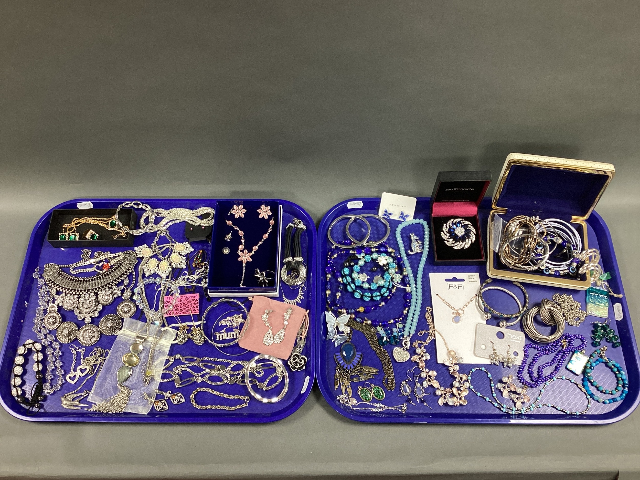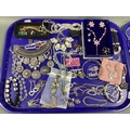 A Collection of Modern Costume Jewellery, including necklaces, bangles, earrings, bracelets, rings, etc :- Two Trays