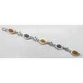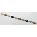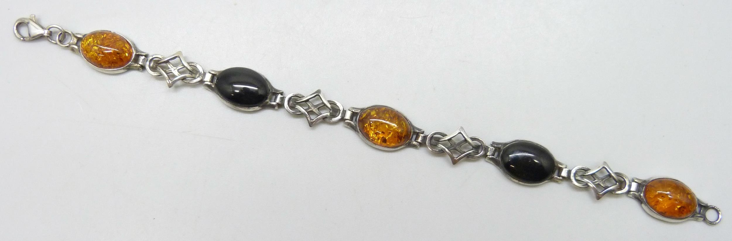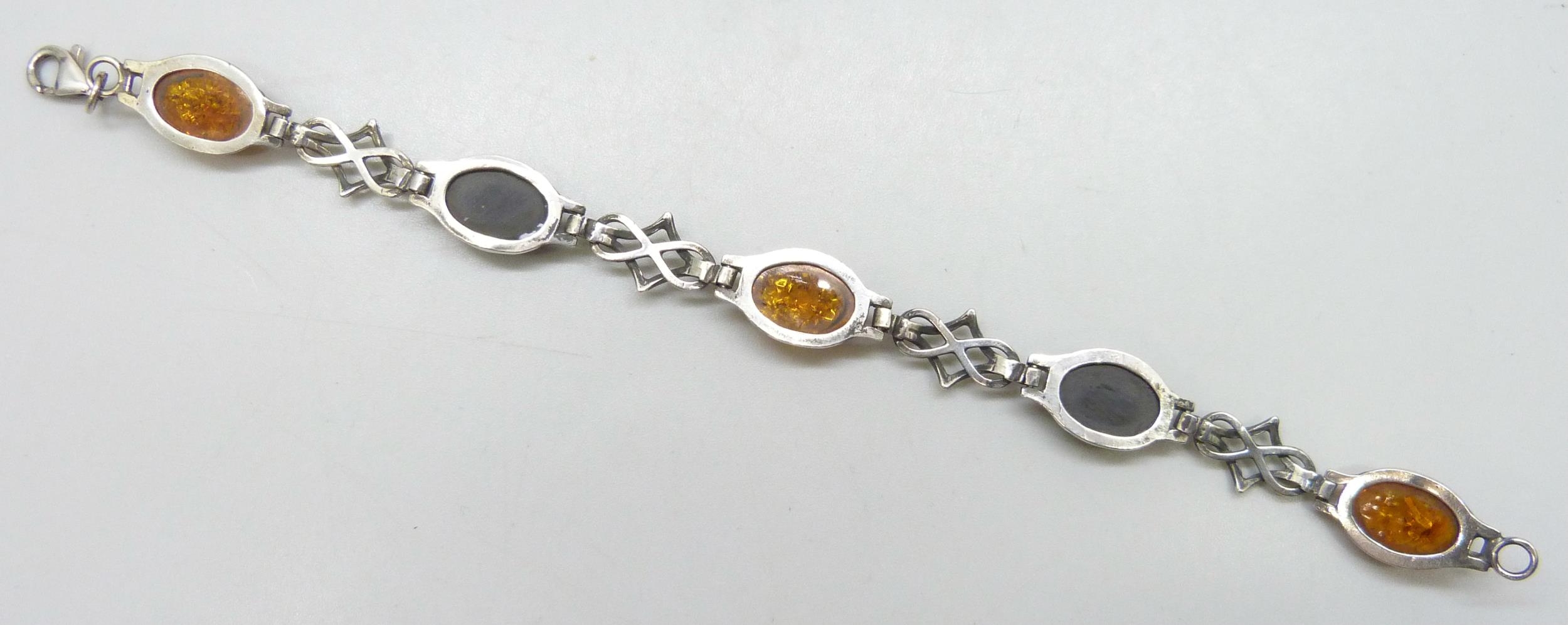 A Celtic style silver, black glass and amber style bracelet, 18.5cm