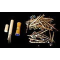 Each having glass bead finials, together with twenty turned wooden lace bobbins, a Mauchline needle box and two additional needle cases.