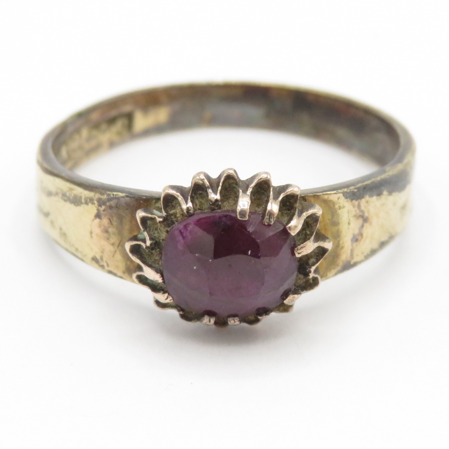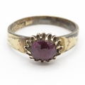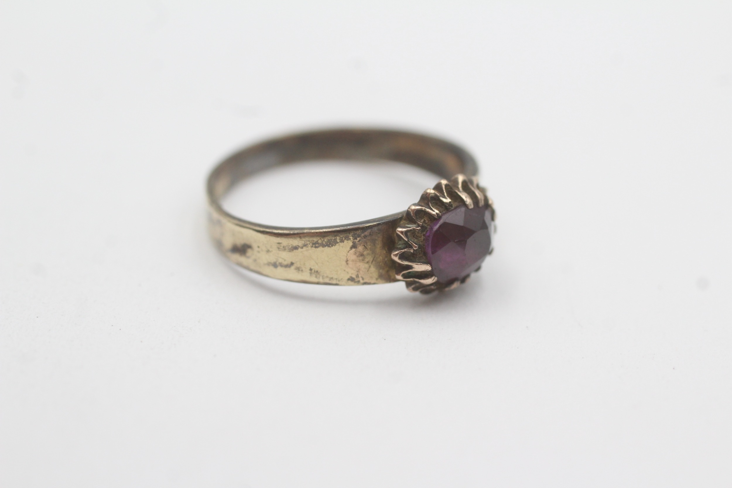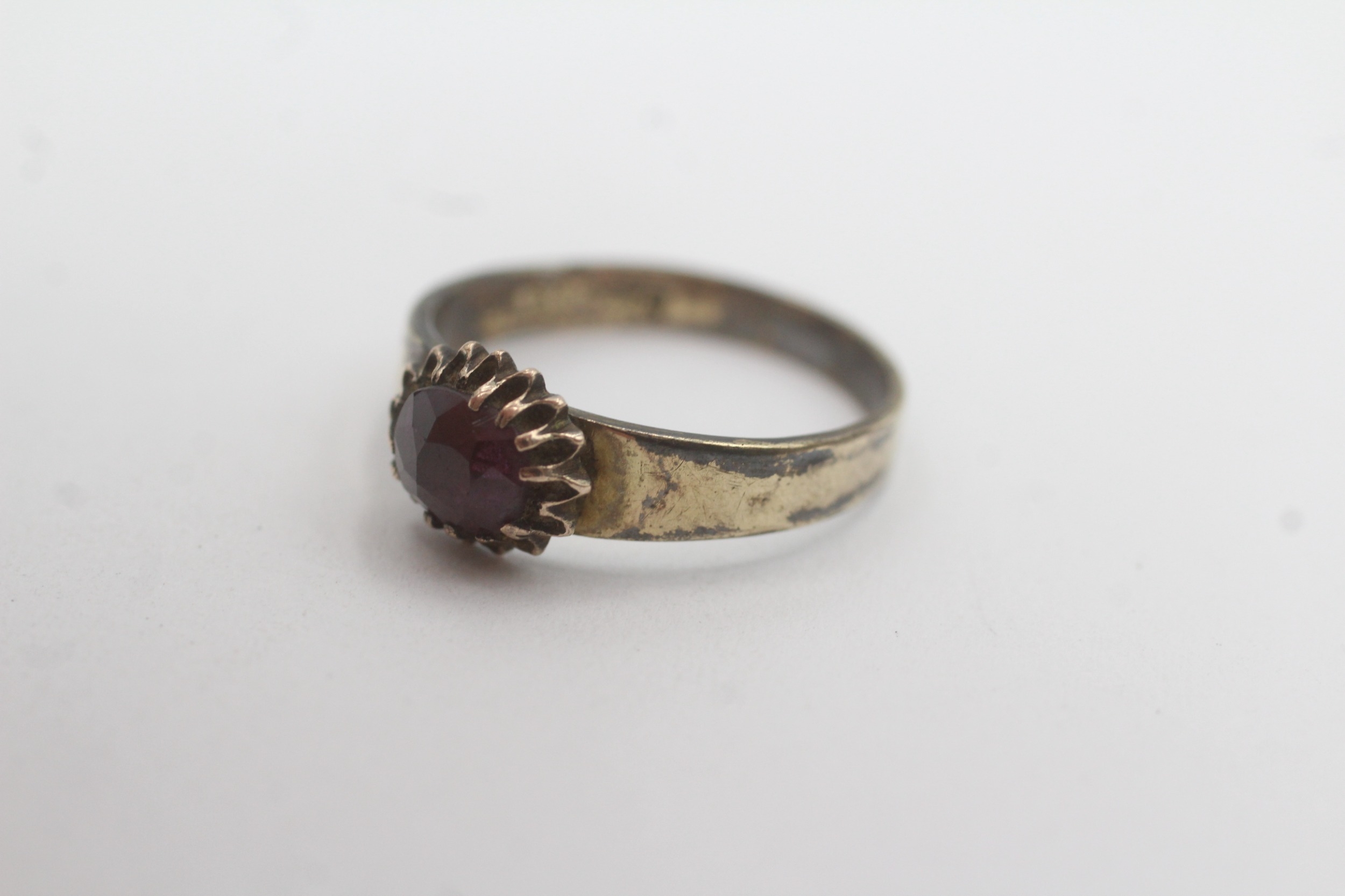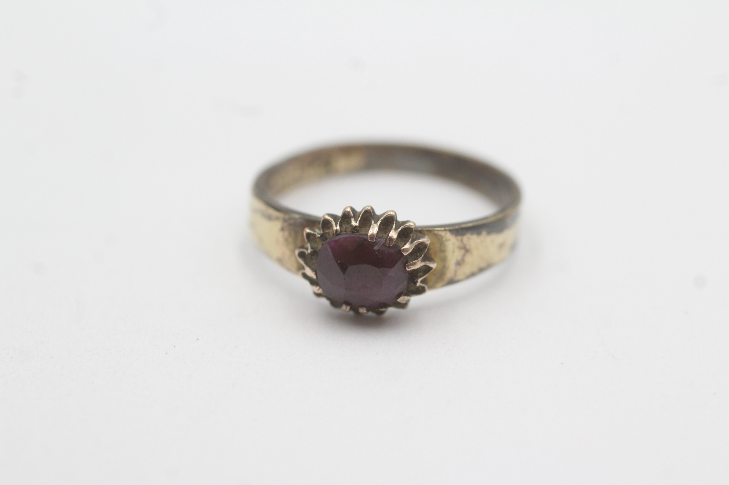 9ct gold garnet solitaire ring as found (1.5g) Size N