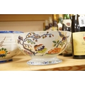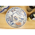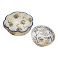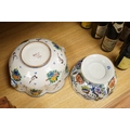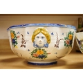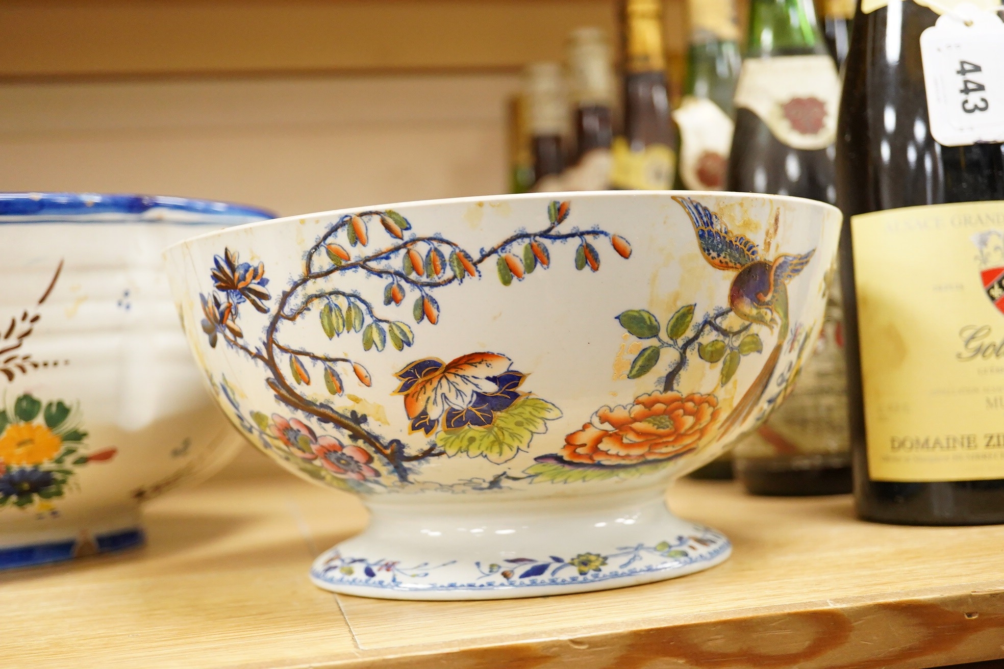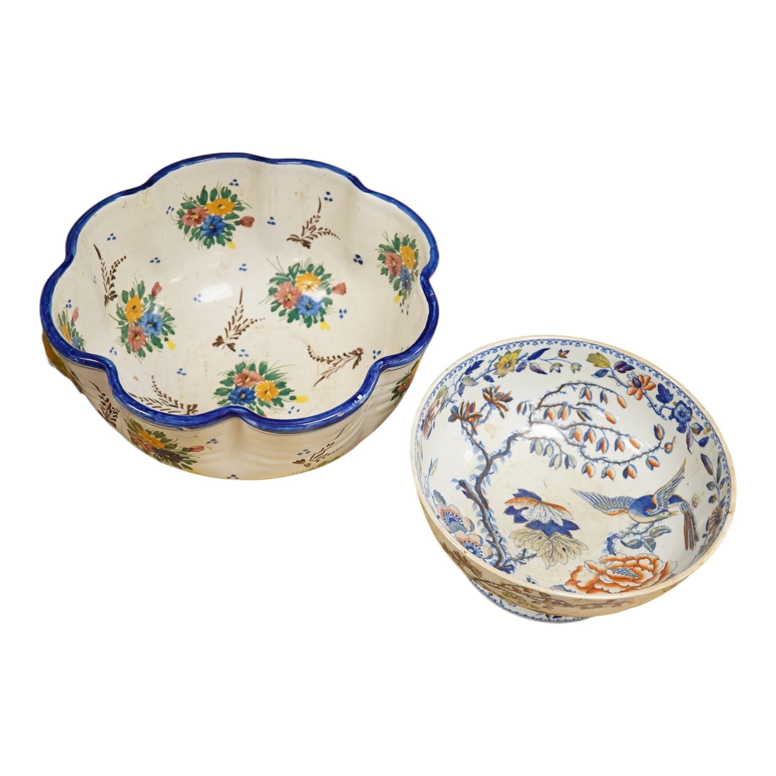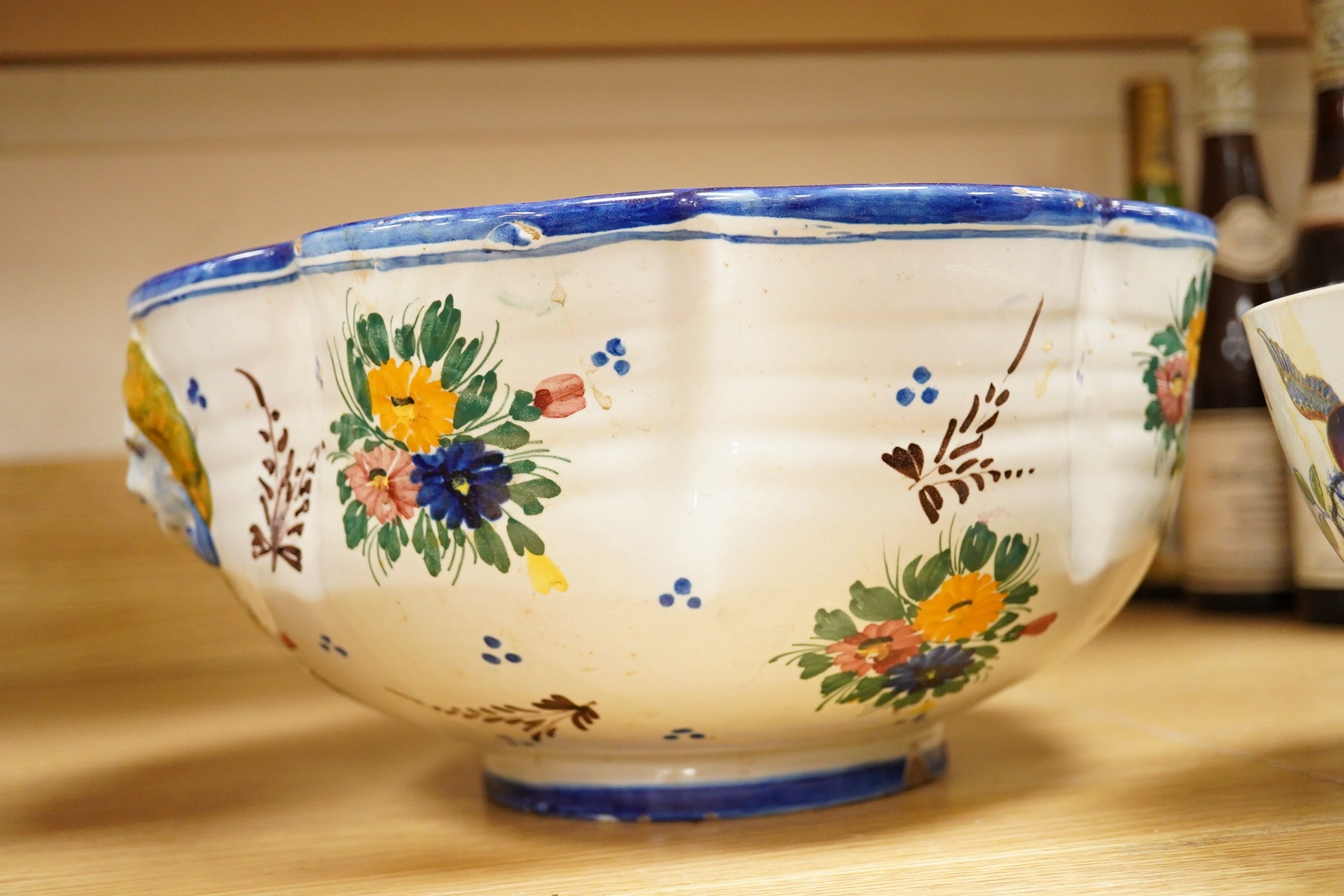 An Italian maiolica punch bowl painted with flowers and masks, and a Davenport Stone China punch bowl, the larger 31cm