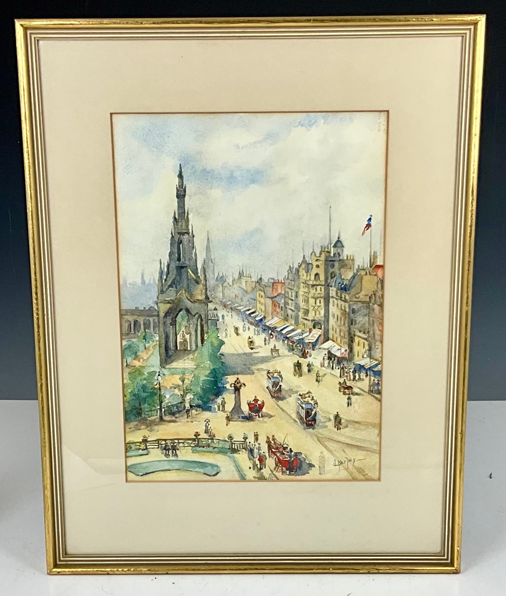 L HARPER WATERCOLOUR DEPICTING PRINCESS STREET, EDINBURGH.Approx. 36 x 25cm