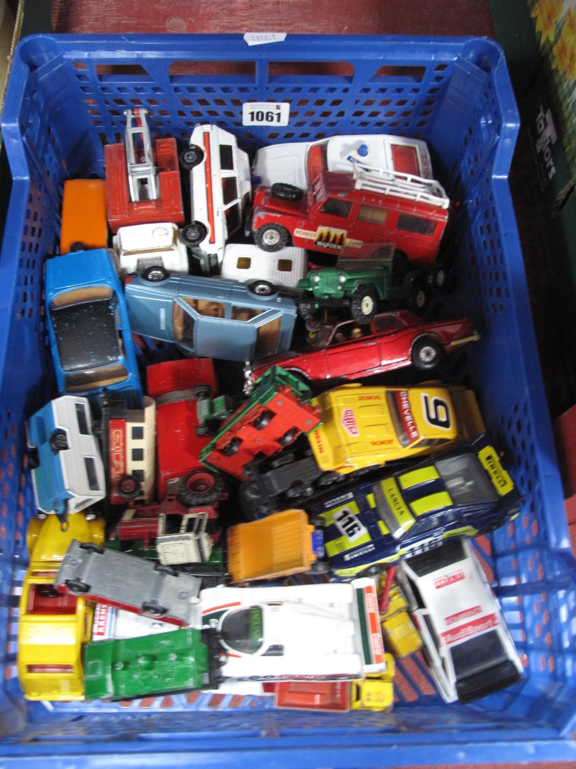 Corgi Jeep CJ-5, Corgi 'Vigilant Range Rover', other Corgi diecast cars, Matchbox Ford Galaxy, No 24 shunter and other Matchbox cars etc.