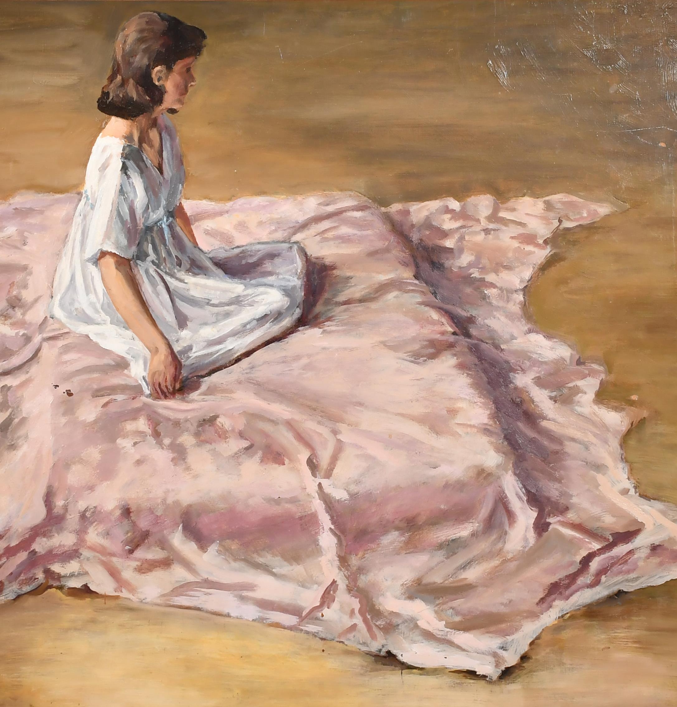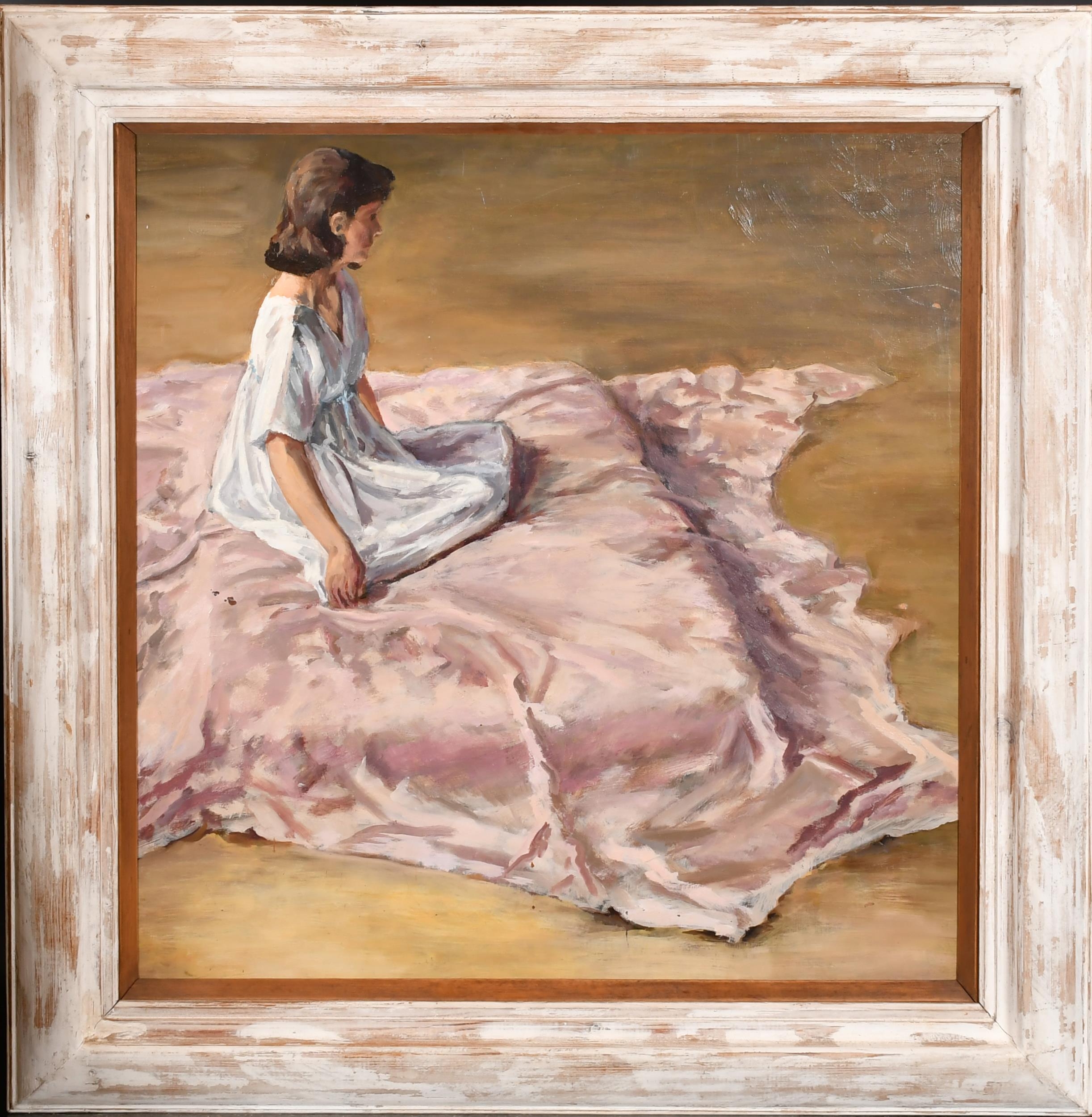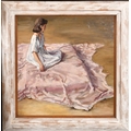 20th Century English School. A Lady Seated on a Rug, Oil on board, 25.75" x 24.75" (65.4 x 62.8cm)