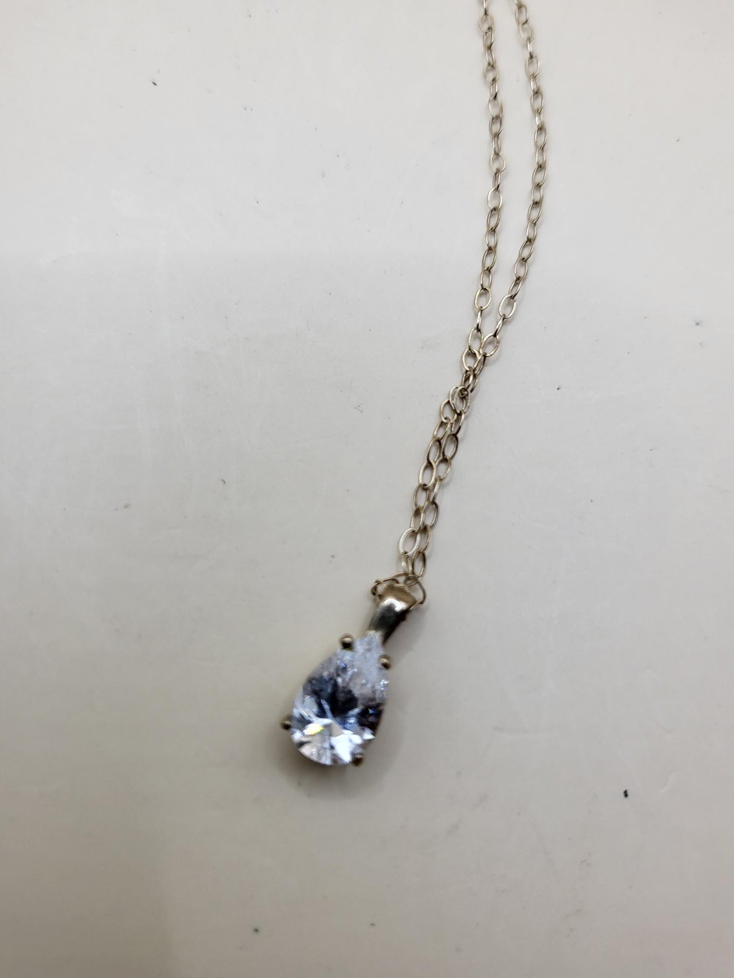 9ct Gold Chain & Cubic Zirconia Pendant Weighs 0.9g Very Tangled