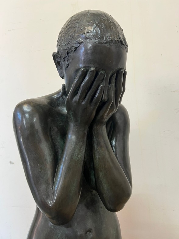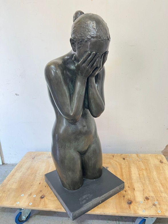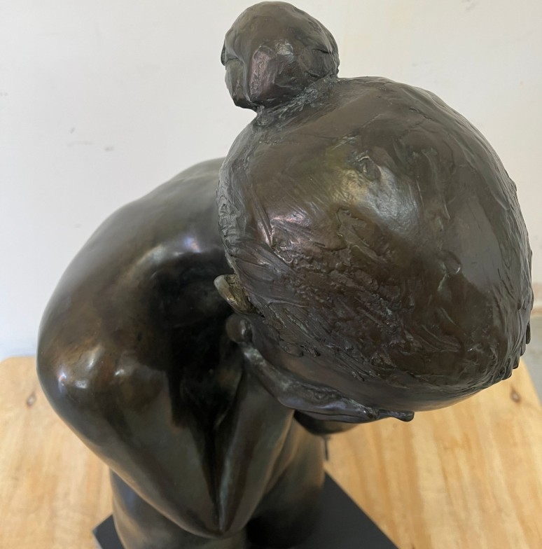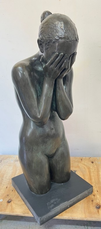 Bronze sculpture of a woman by Daniel Ludwig with square plinth base H108cm SQ45cm