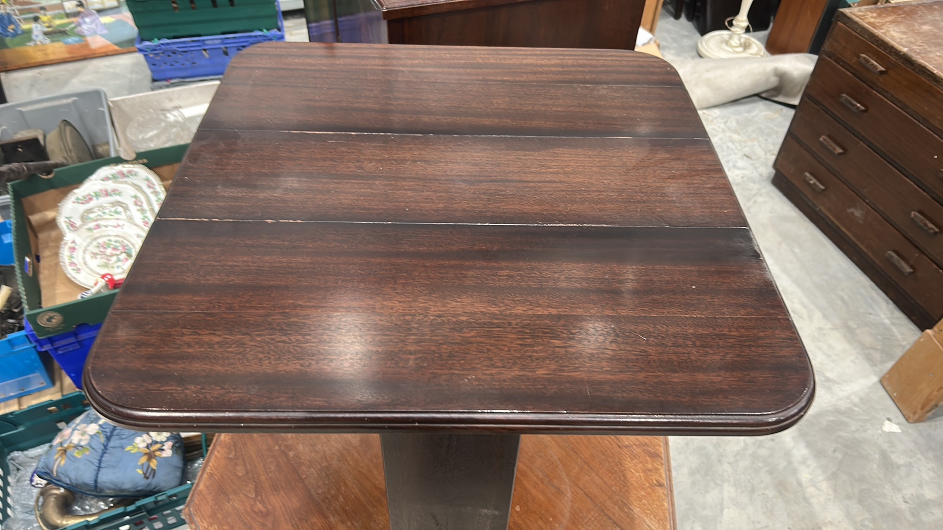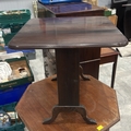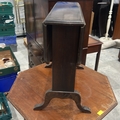 Edwardian mahogany drop-leaf occasional table, rounded rectangular top, single panelled pedestal joined by shaped bracket feet.