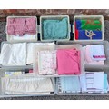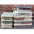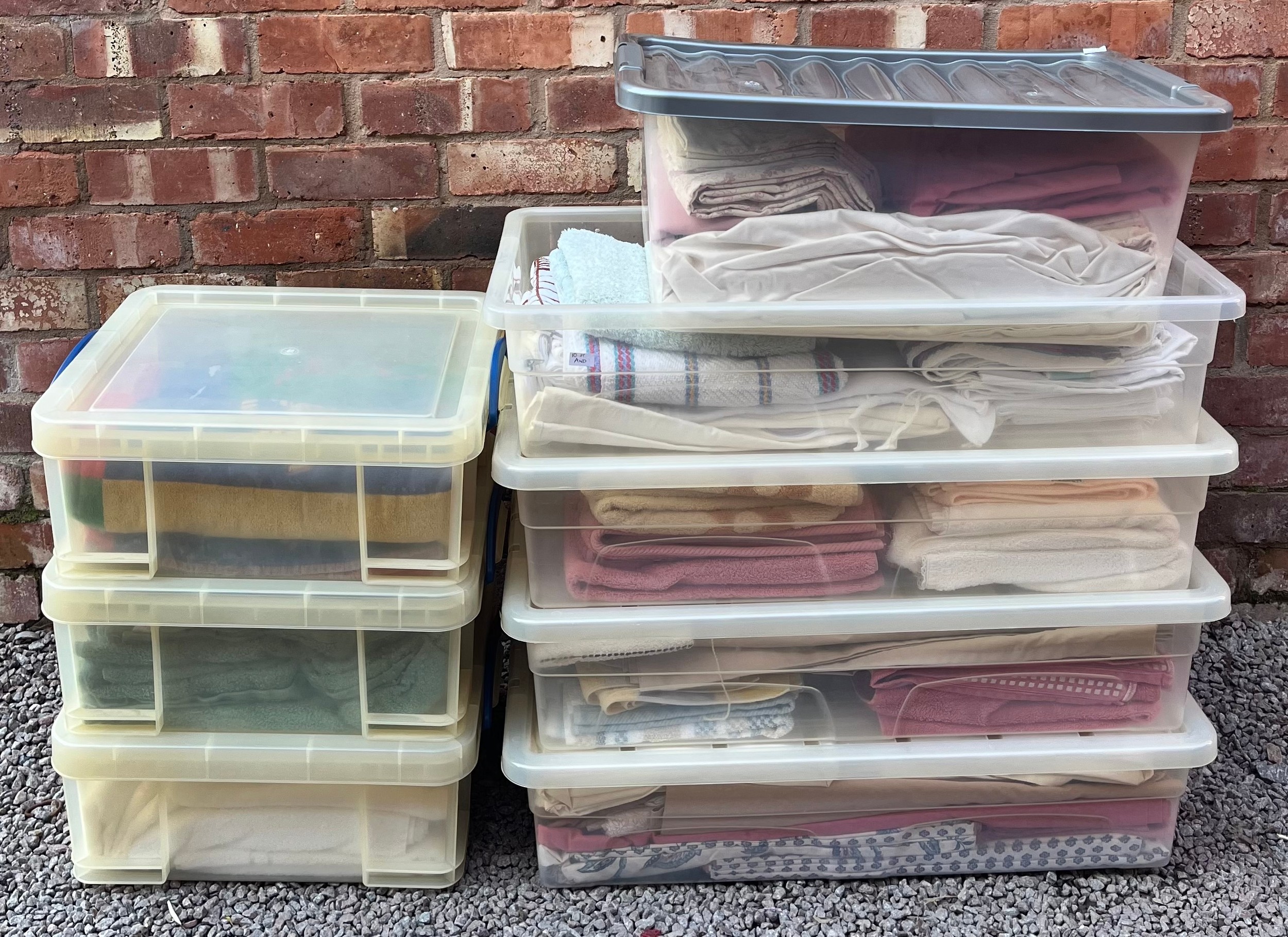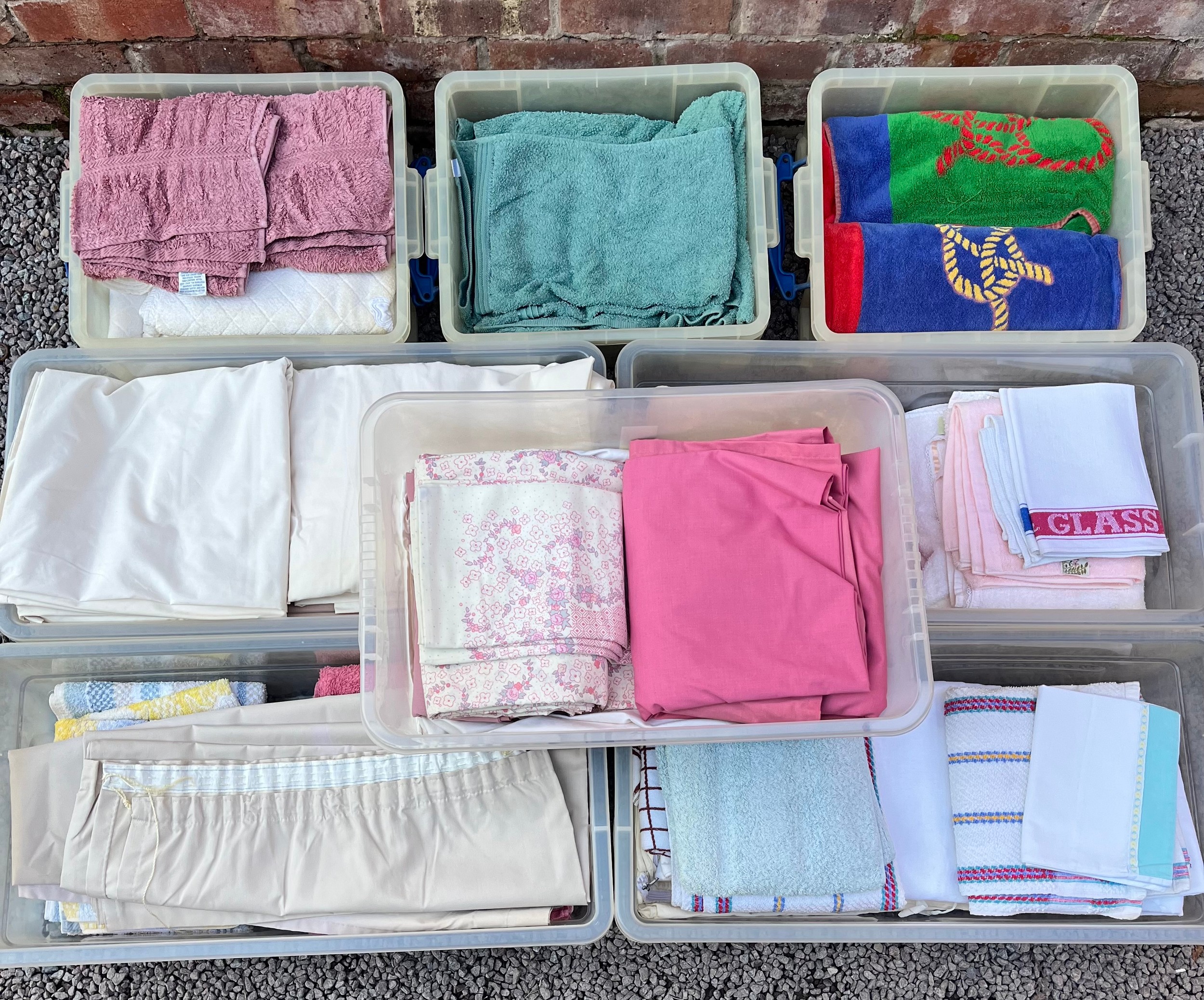 EIGHT CLEAR UPVC BOXES OF LINENS/TOWELS